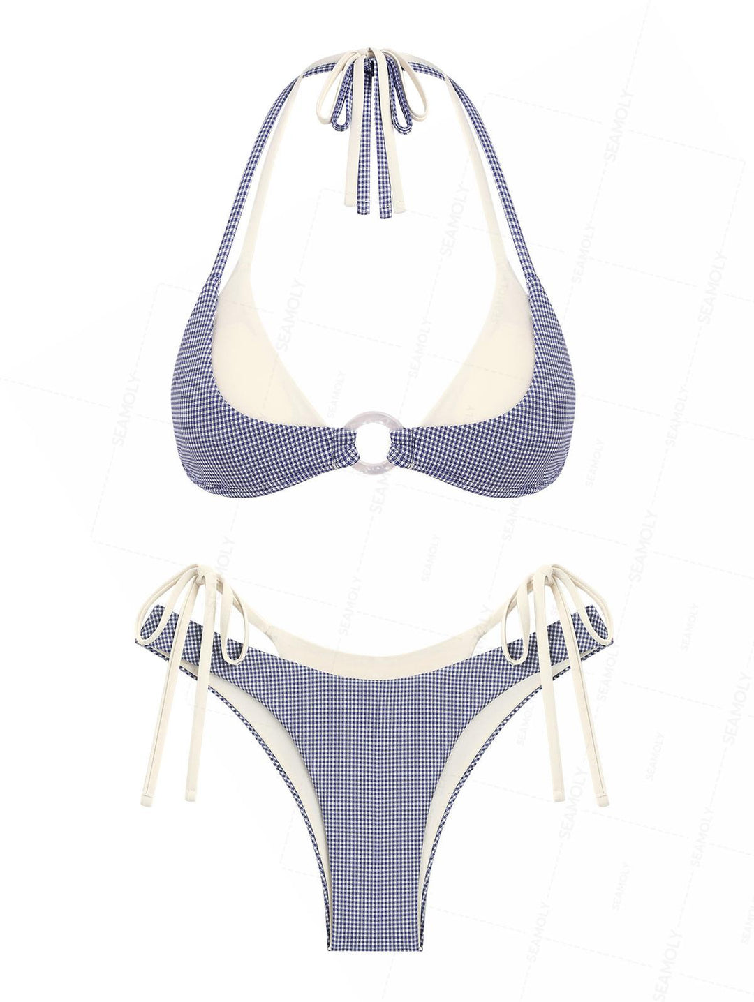 Seamolly Contrast Color Gingham O Ring Double Layer Bikini Set