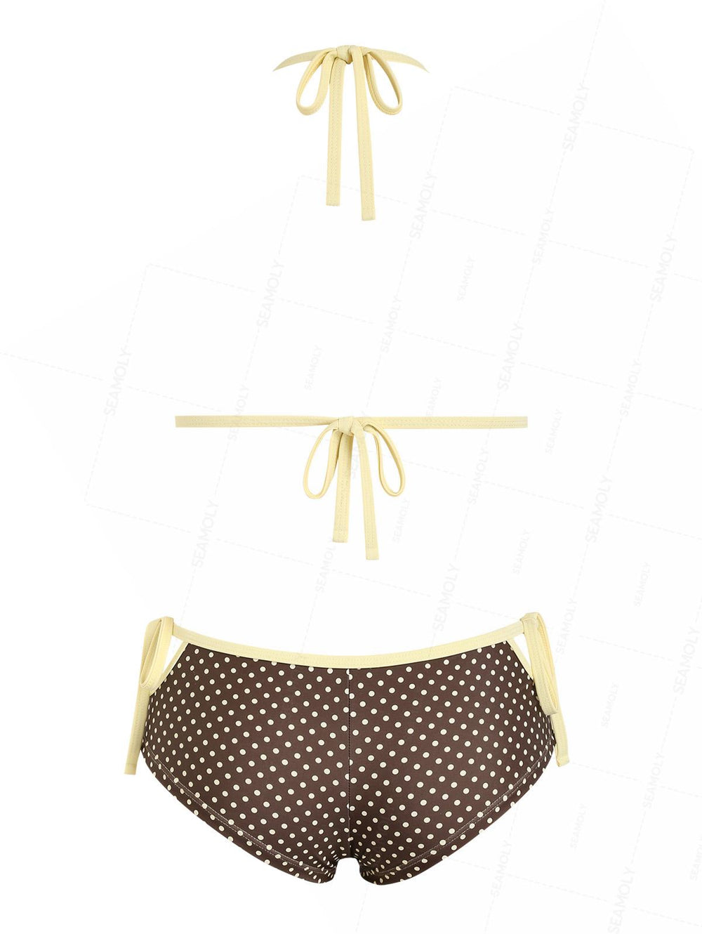 Seamolly Retro Vintage Inspired Polka Dot Lace Bowknot Halter Triangle Bikini Set