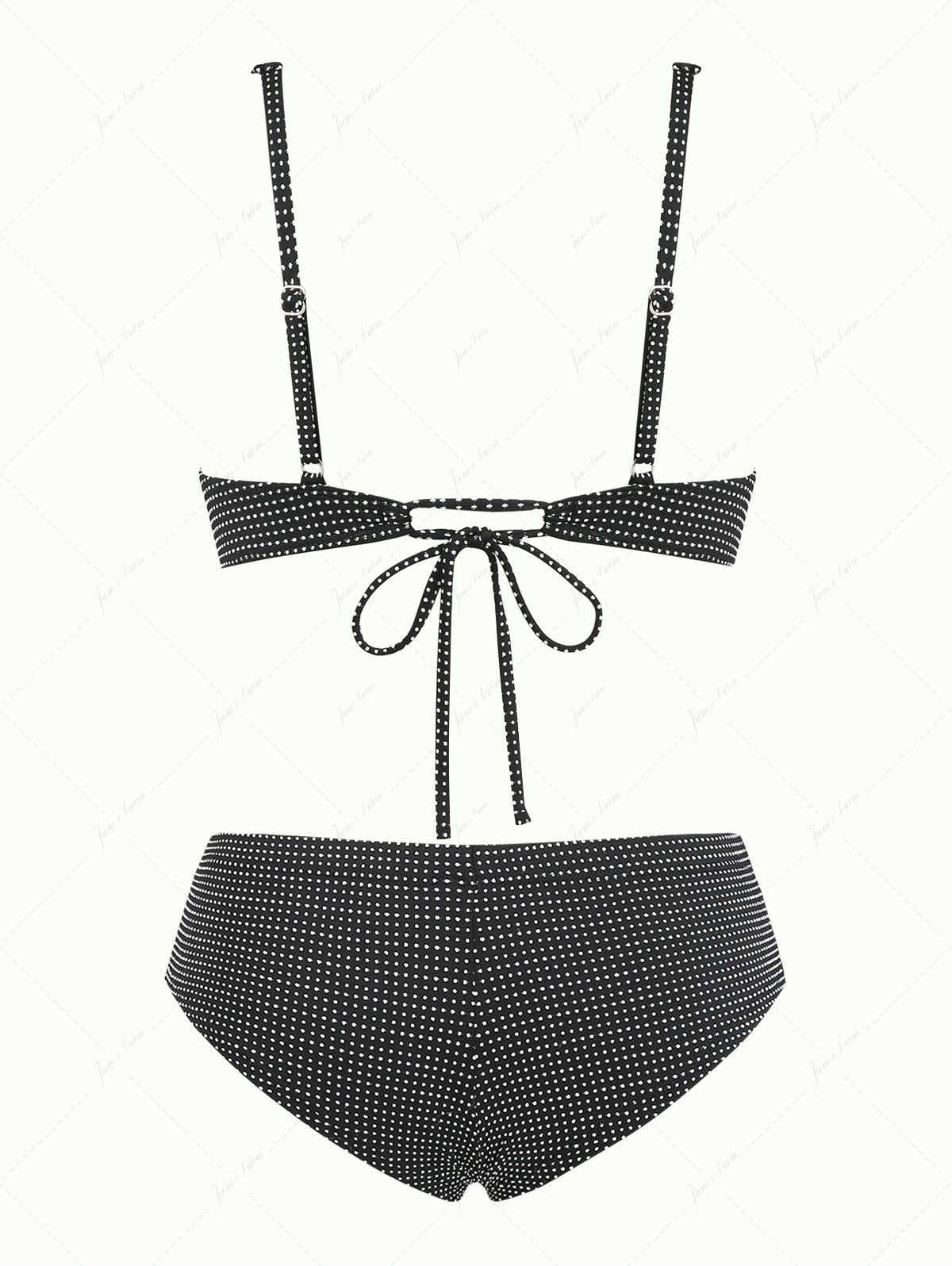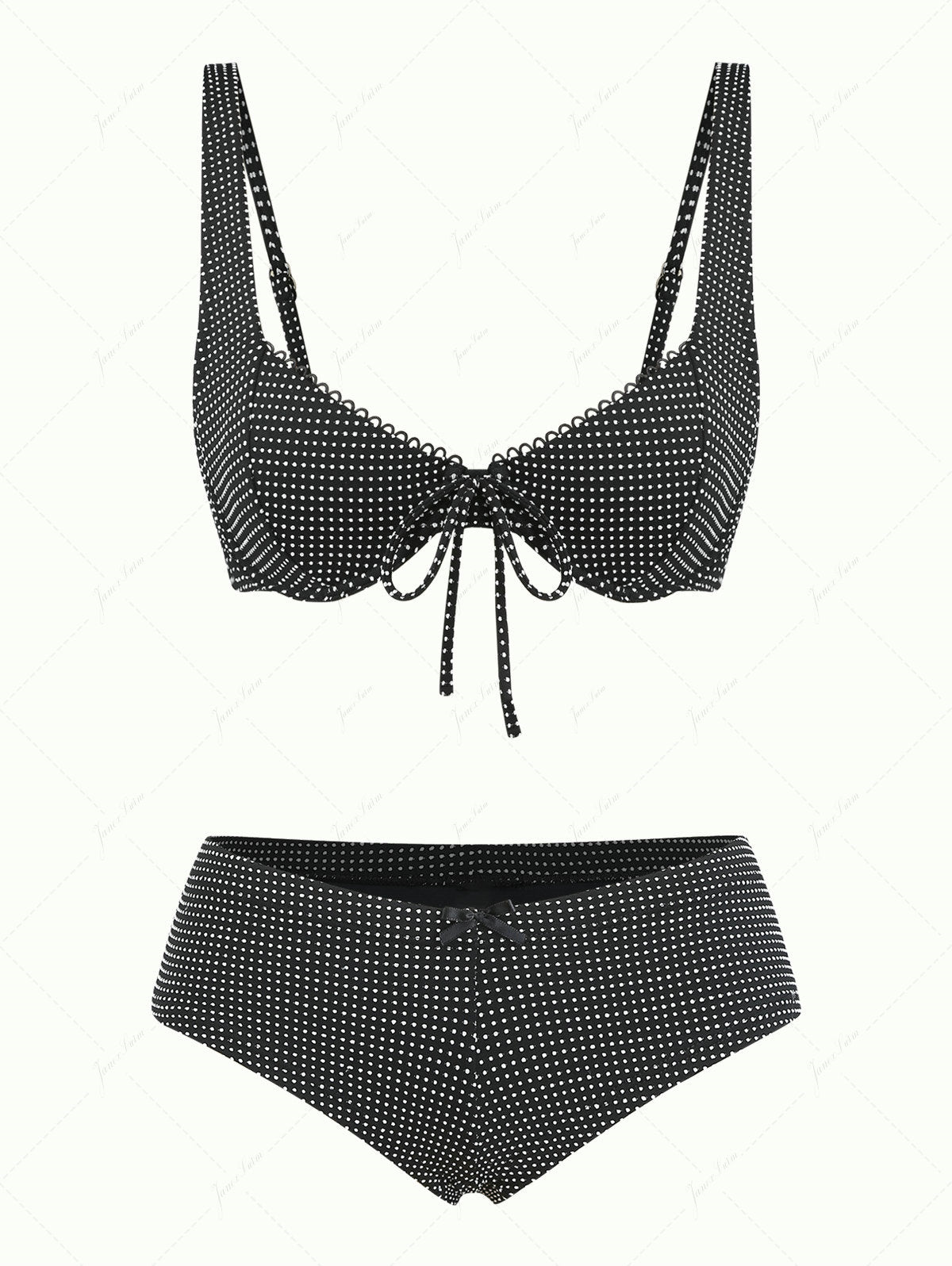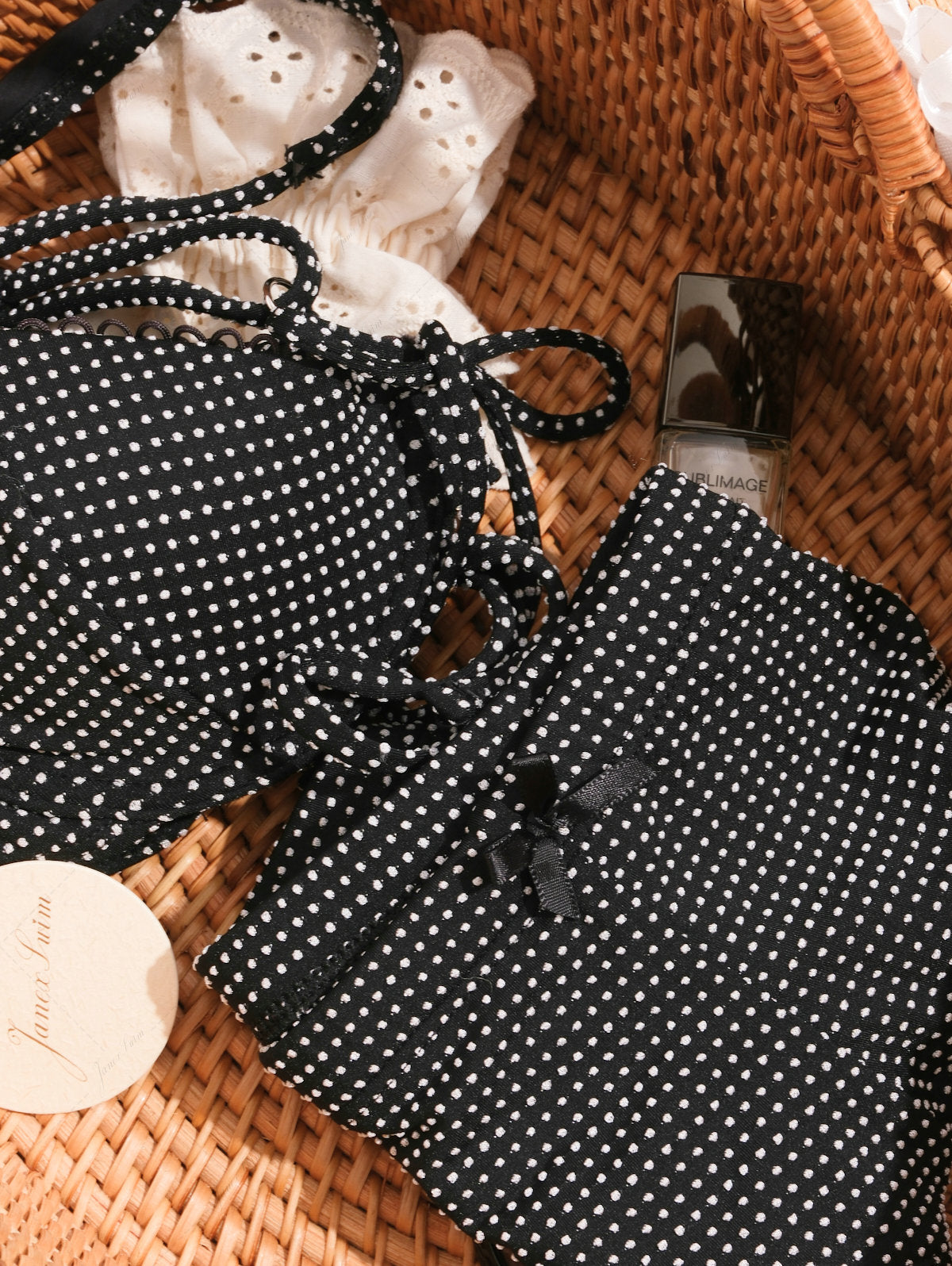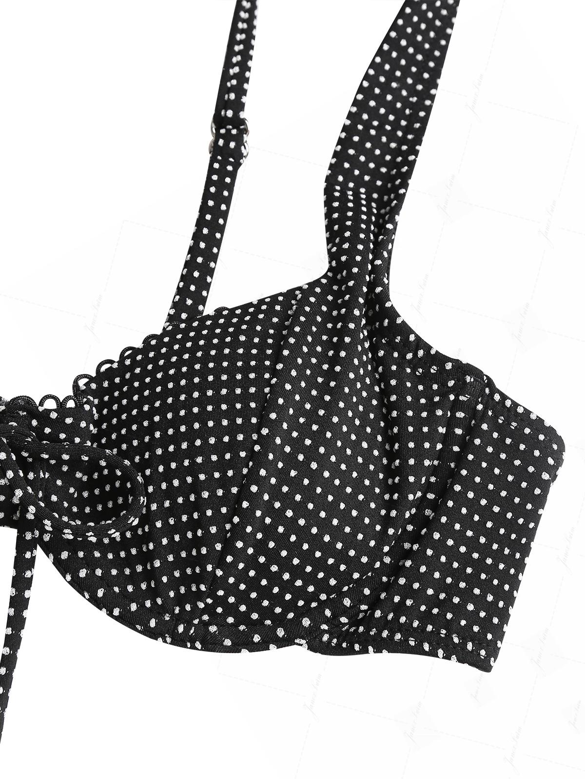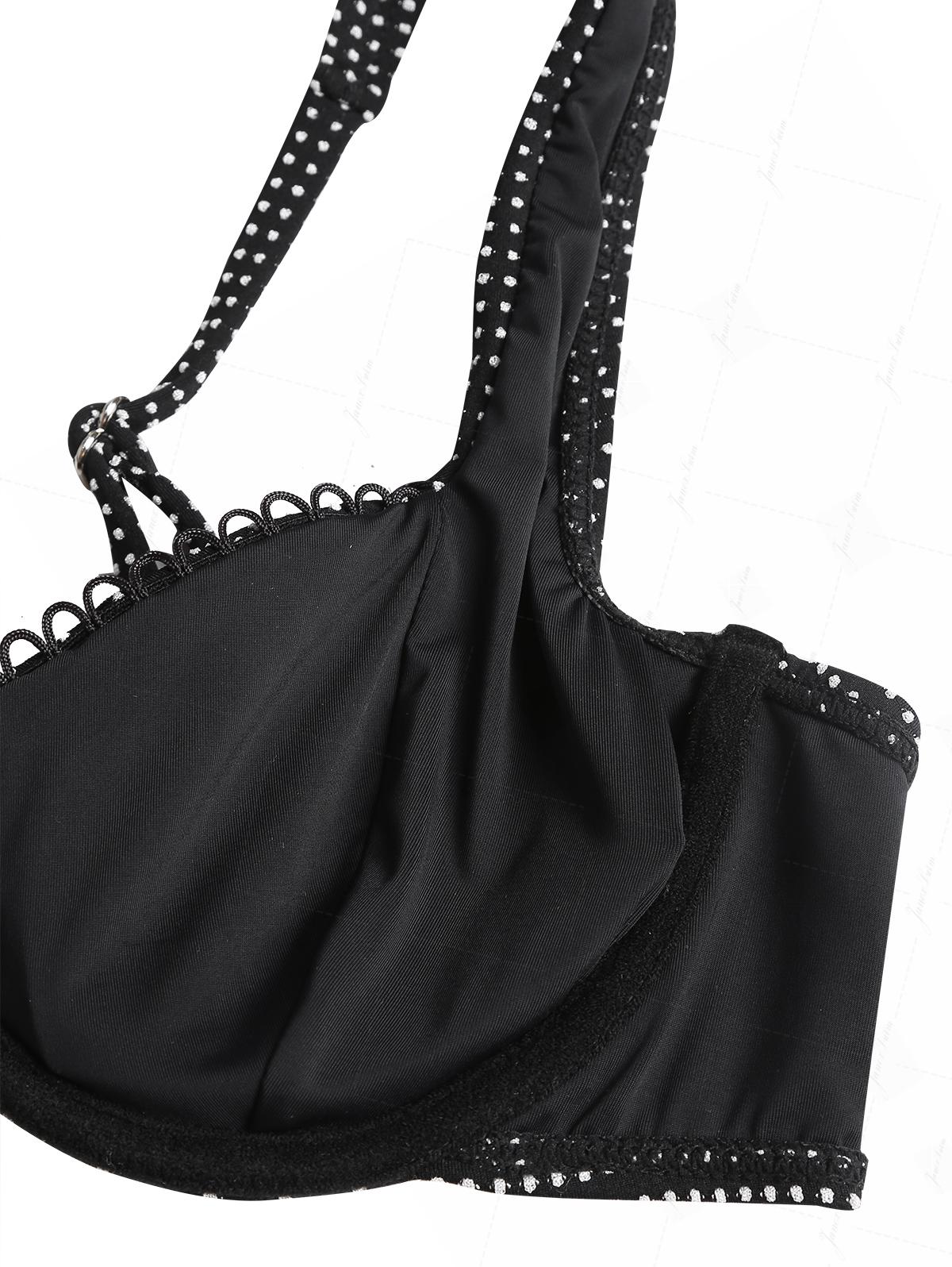 Janex Black Pin Dot Jacquard Fabric Picot Trim Underwire Bikini Set