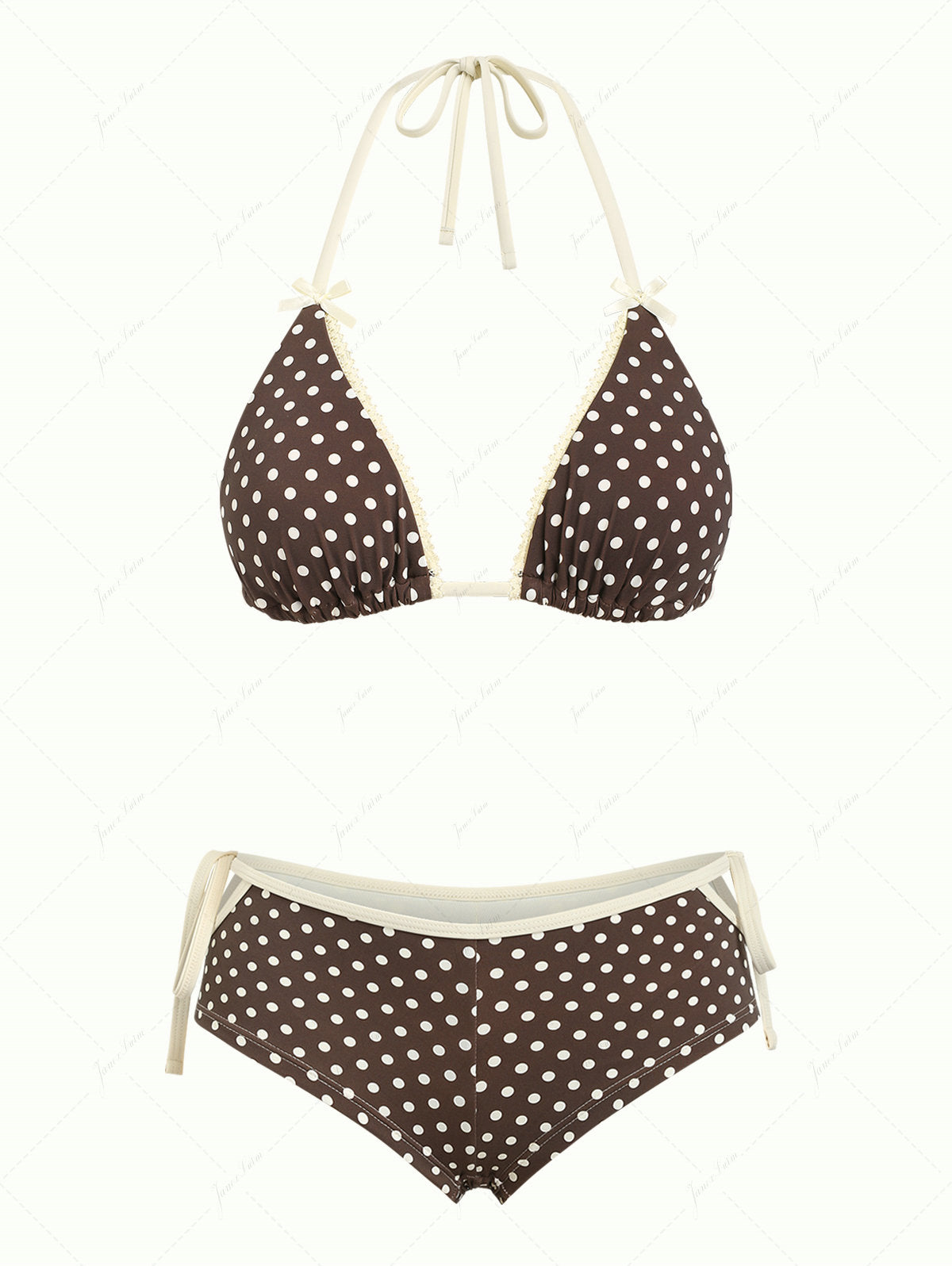 Deep Coffee Polka Dot Lace Bowknot Cutout Tie Side Cheeky Boyshorts Bikini Set