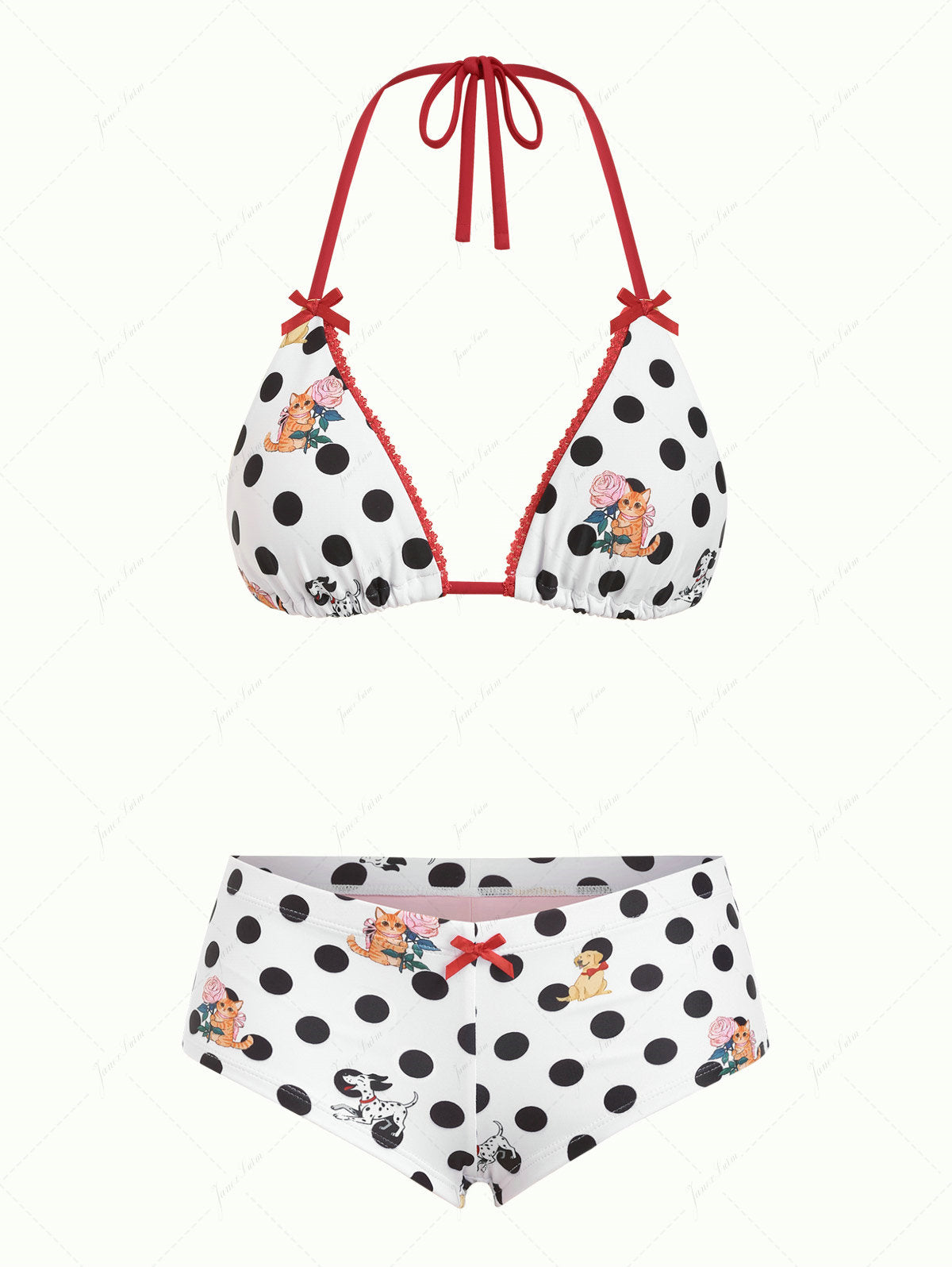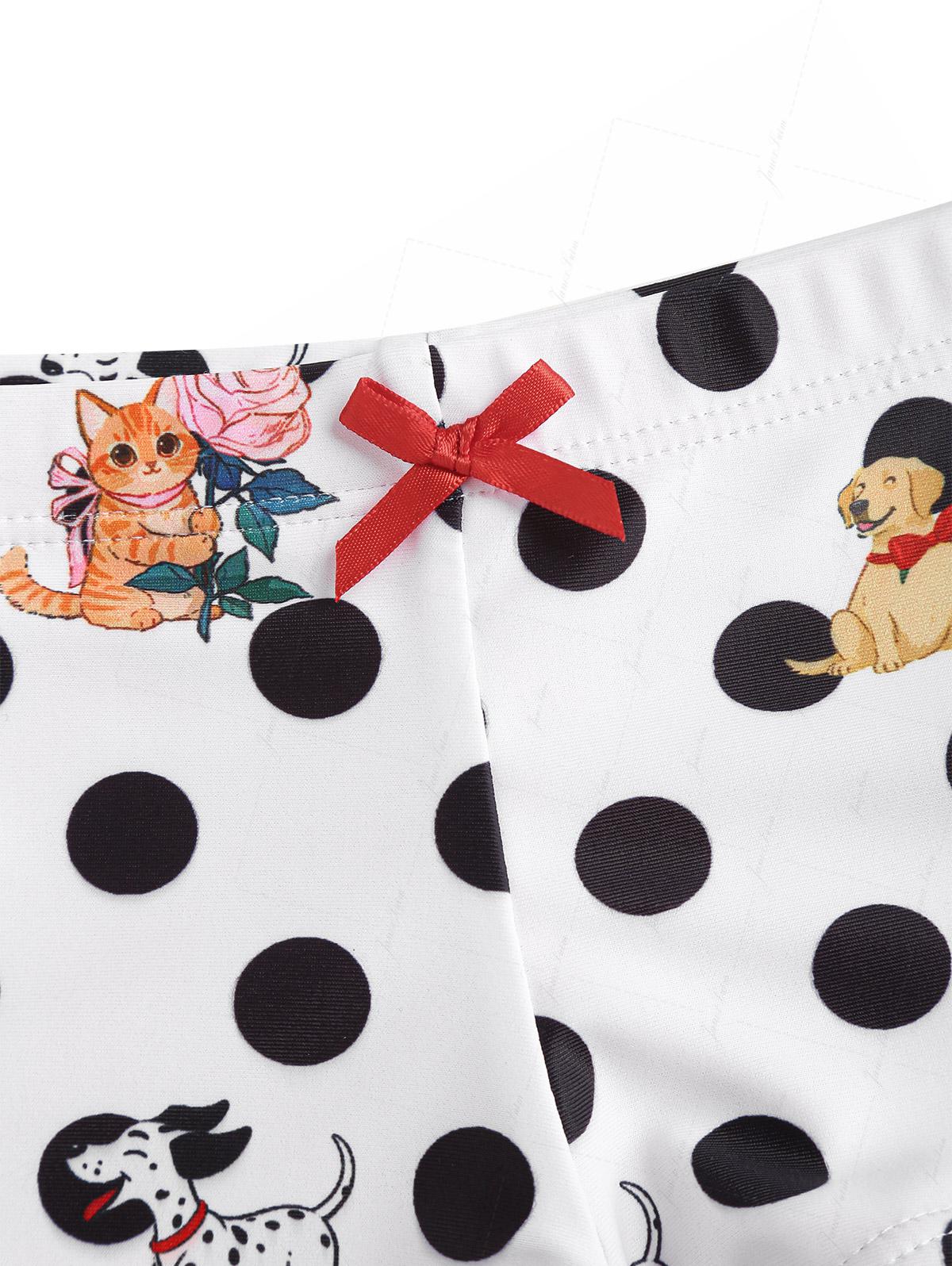 White Polka Dot Animal Print Bowknot Triangle Cheeky Boyshorts Bikini Set