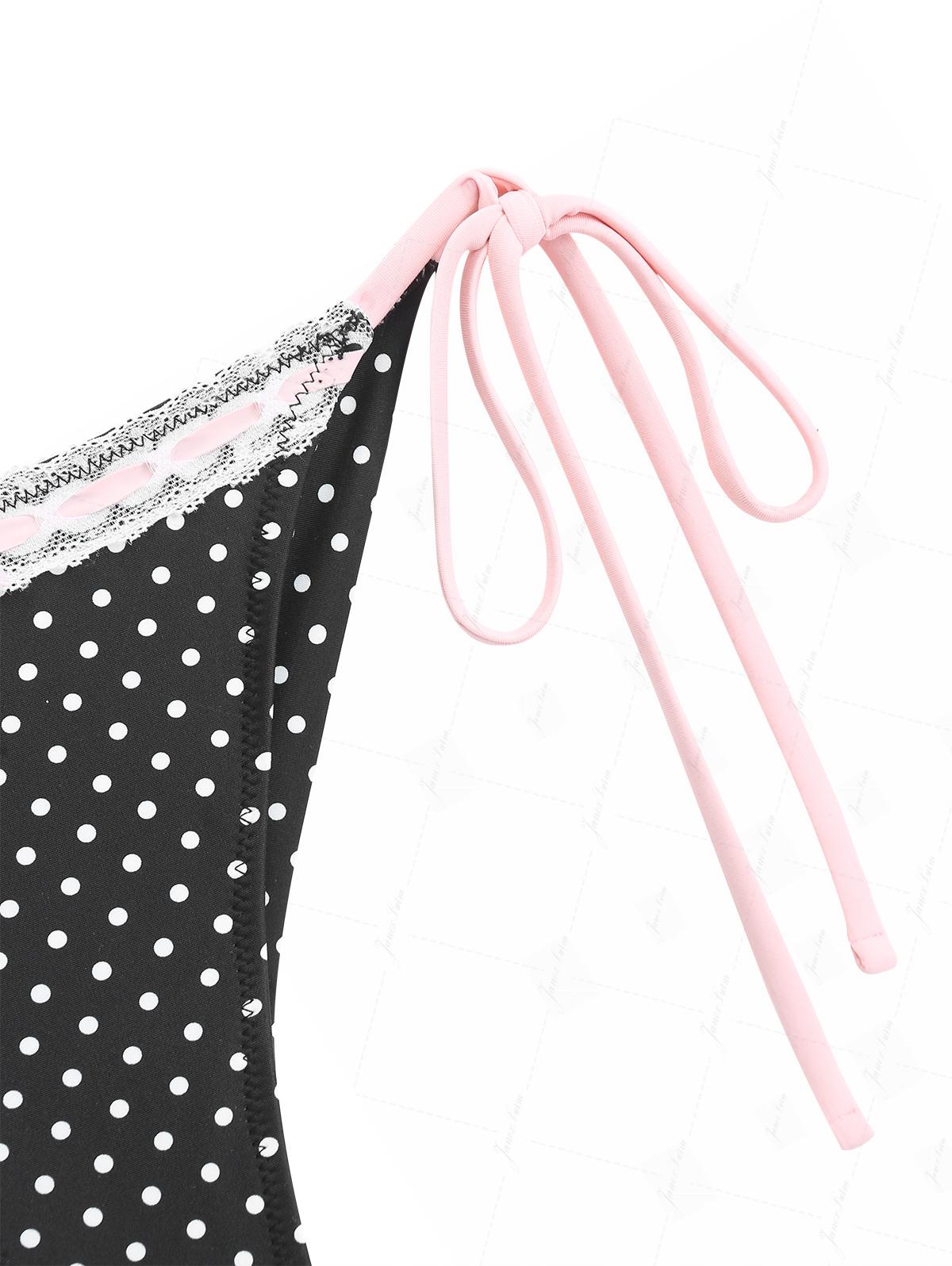 Vintage Black Polka Dot Lace Bowknot Brazilian Bikini Bottom