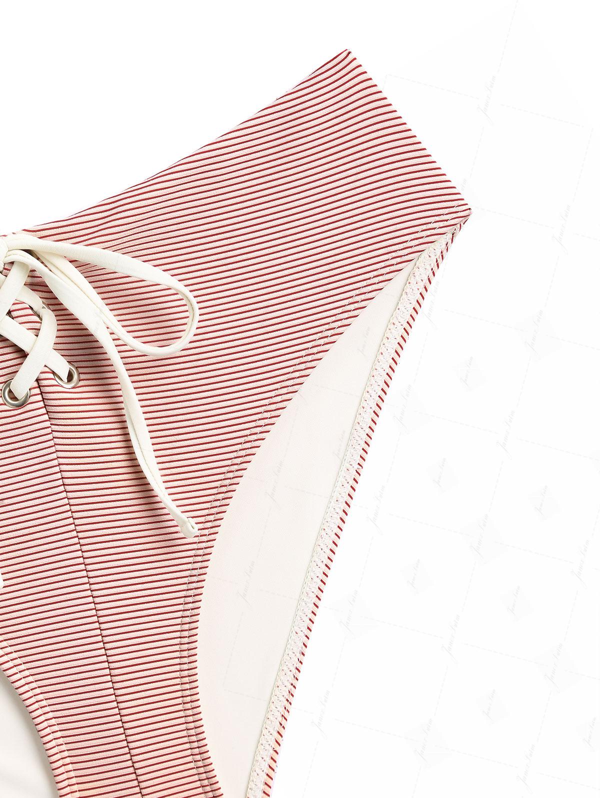 Cherry Red Striped Grommet Lace Up Bikini Bottom