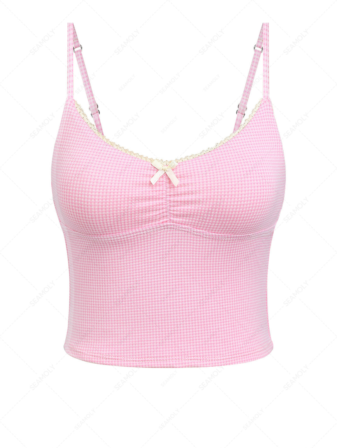 Light Pink Knitted Plaid Lace Bowknot Bikini Top