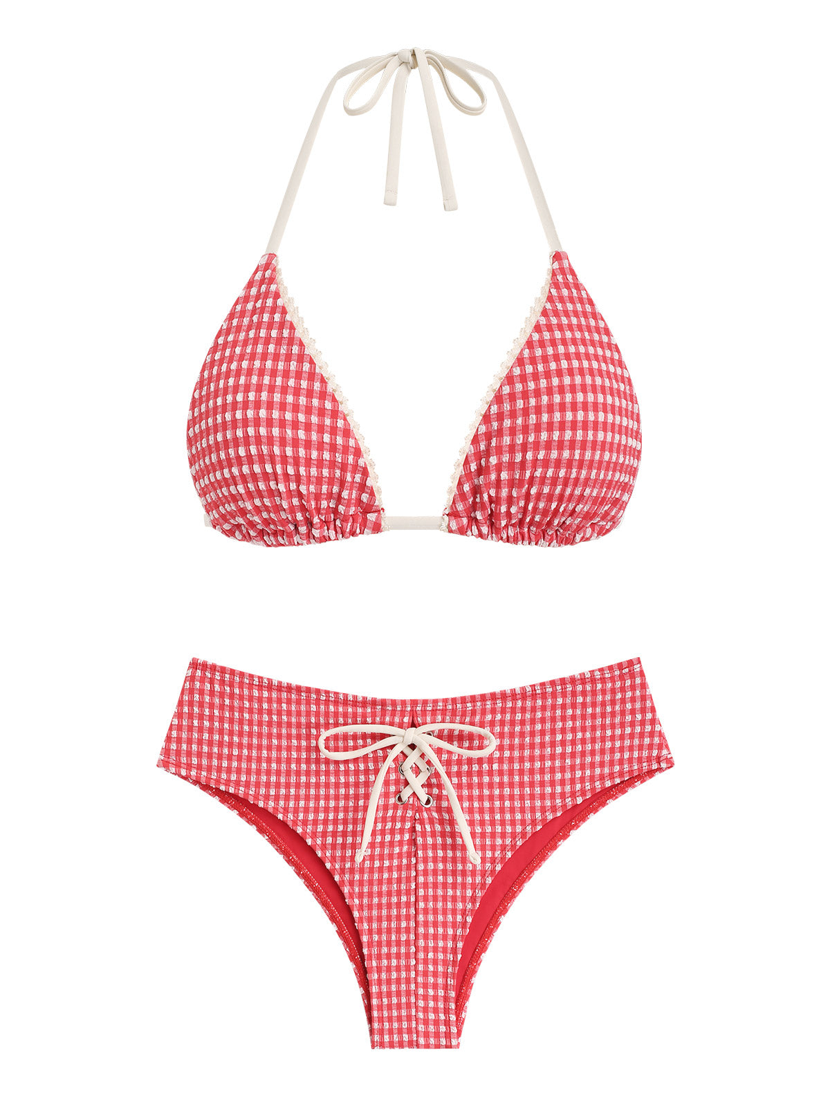 Seamolly Gingham Textured Grommet Lace Up Cheeky Bikini Set