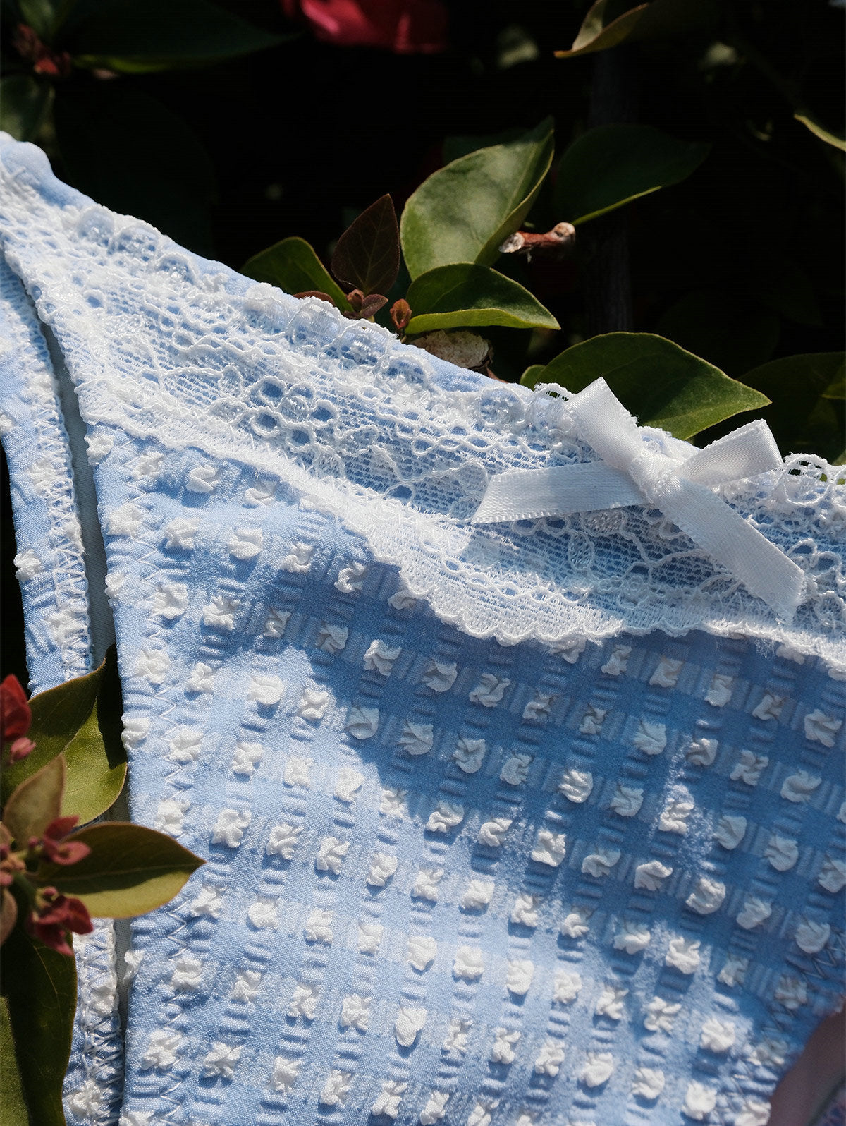 Seamolly Gingham Textured Lace Bowknot Halter Triangle Tie Side Bikini Set