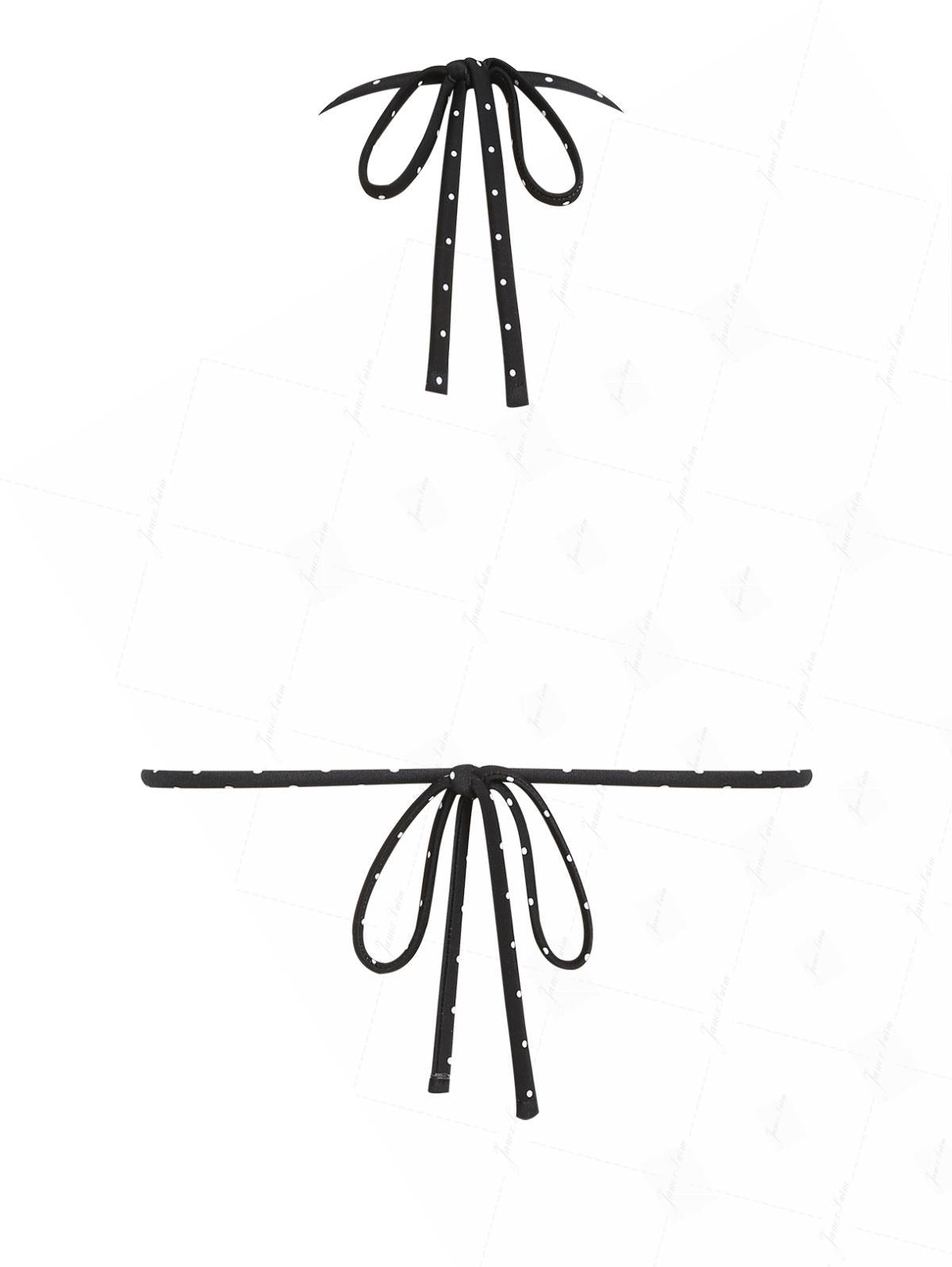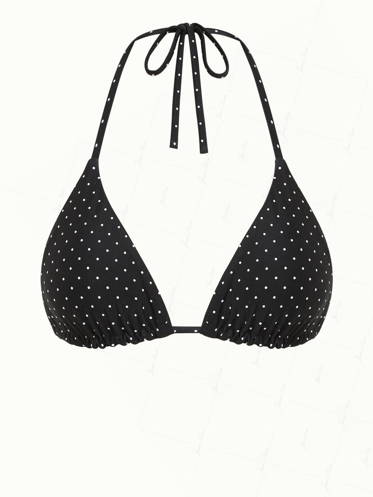 Black Polka Dot Print Halter Triangle Reversible Bikini Top