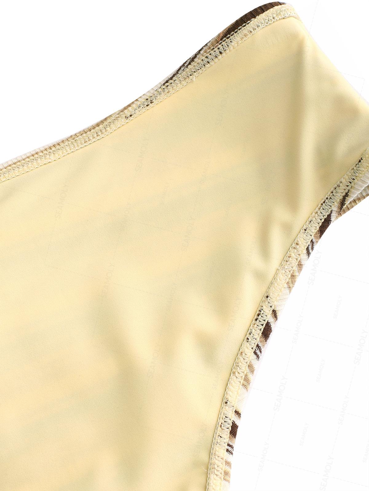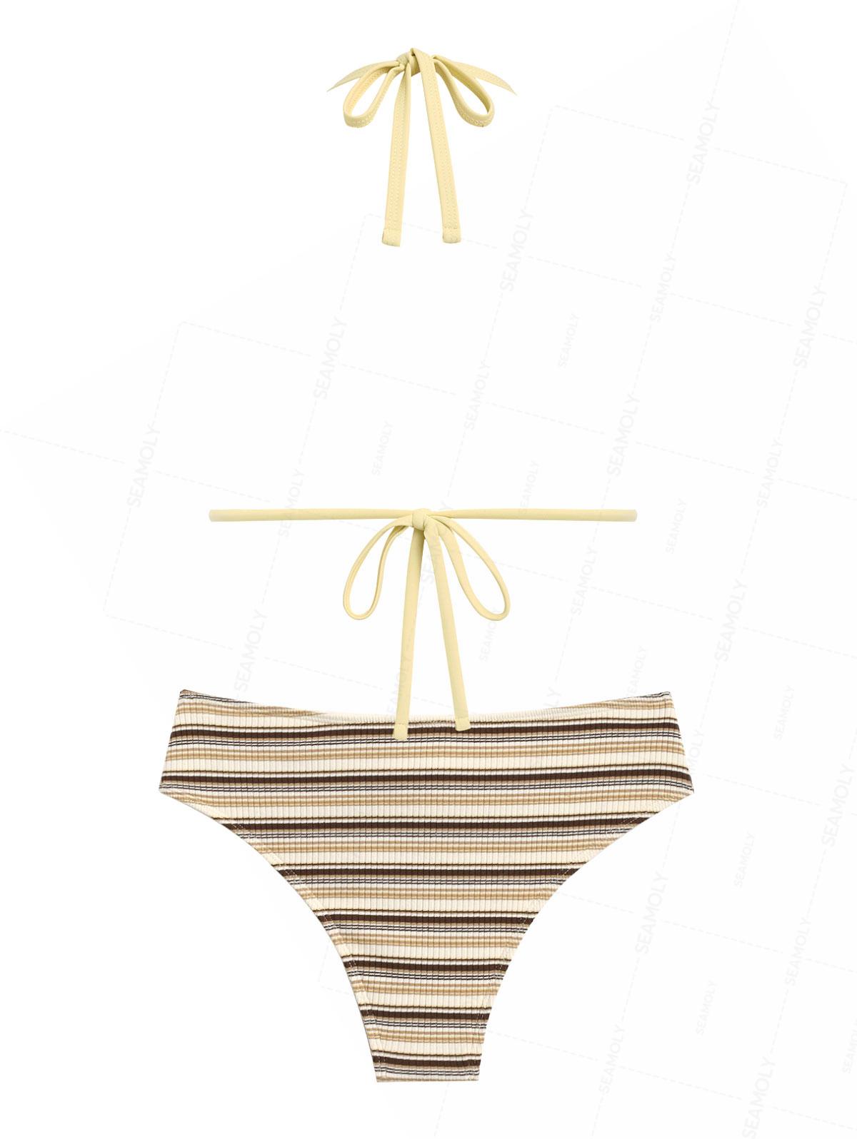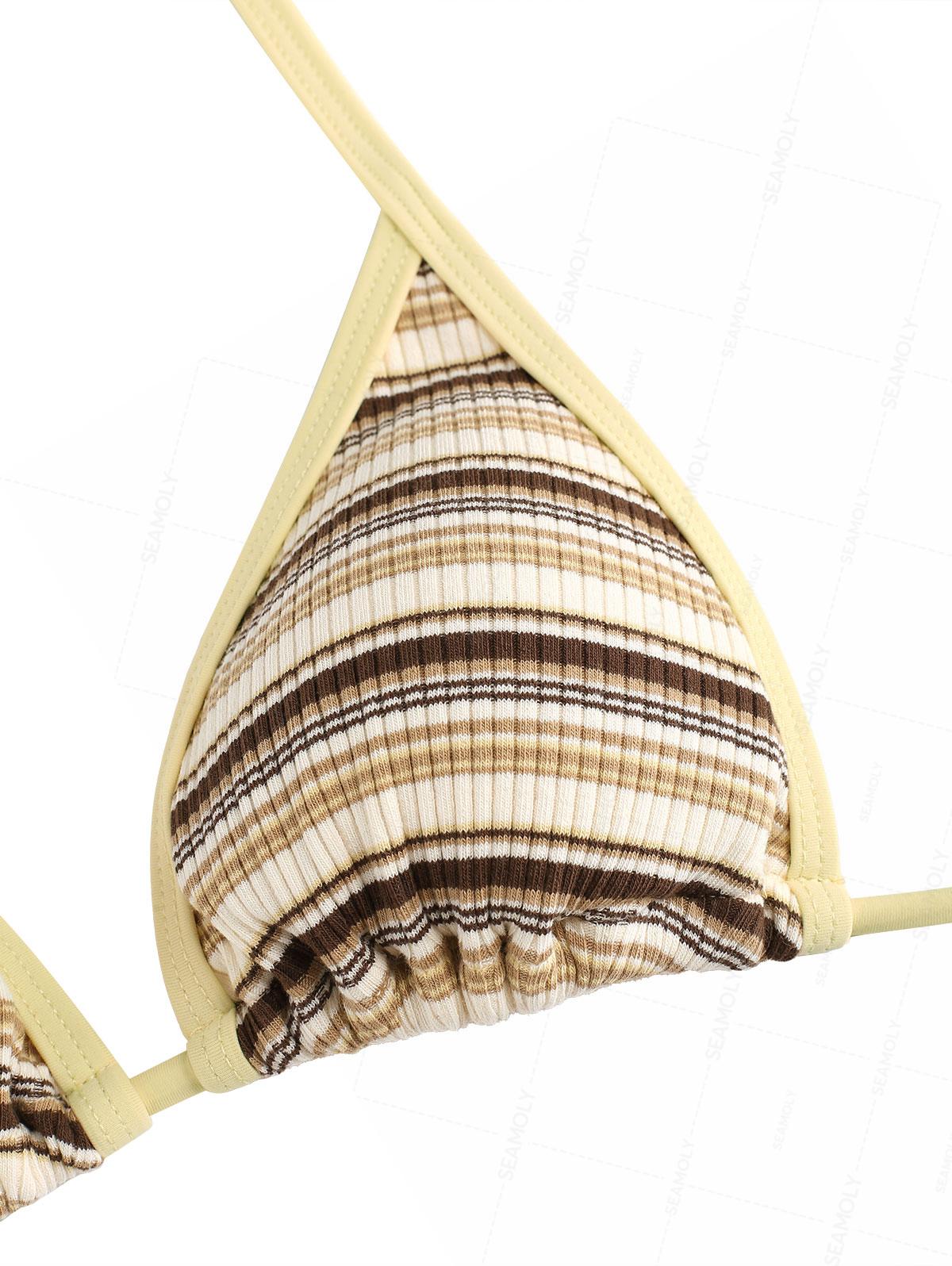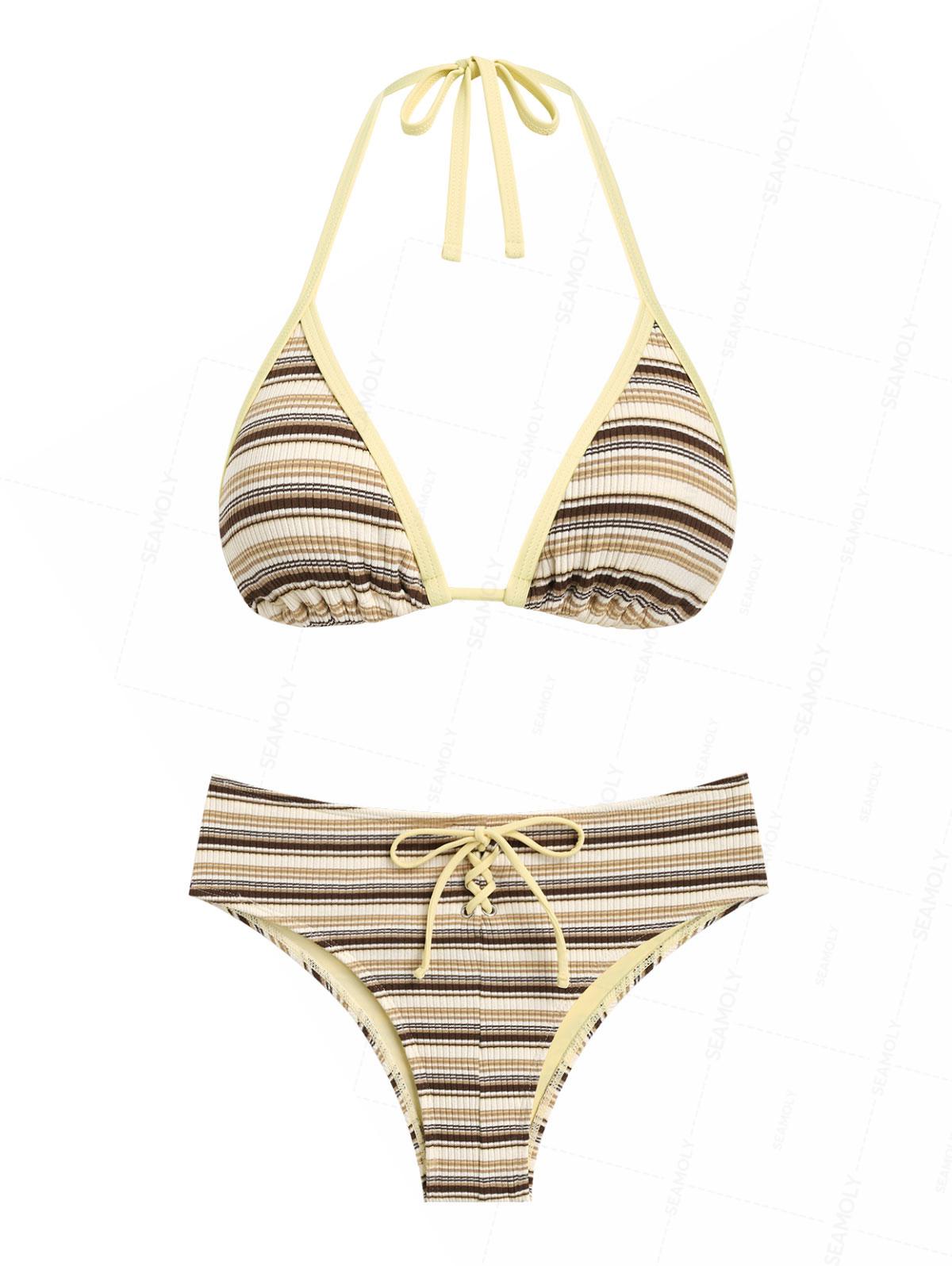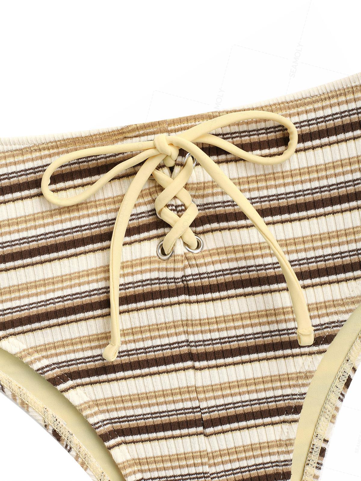 Seamolly Knit Striped Contrast Binding Lace Up Half-Covered Bikini Set