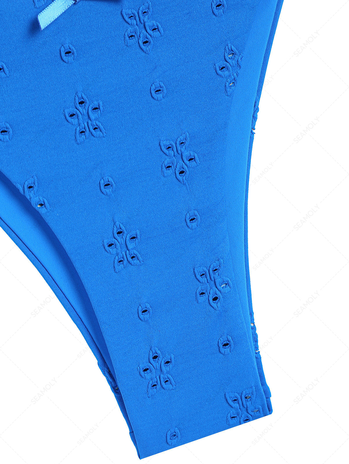 Blue Recycled Fabric Jacquard Bowknot Cheeky Bikini Bottom