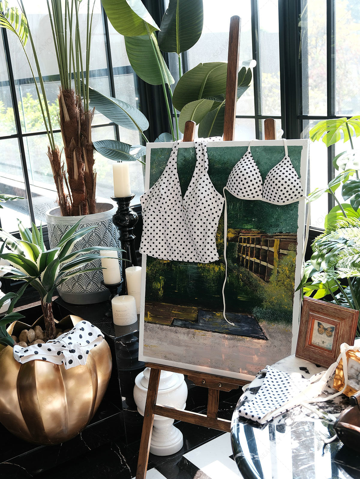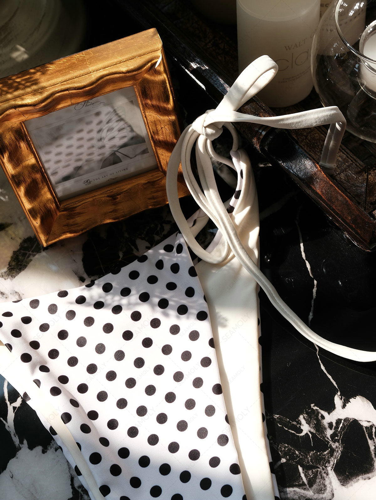 Seamolly Polka Dot Print Hard Cups Support Halter Triangle Bikini Set
