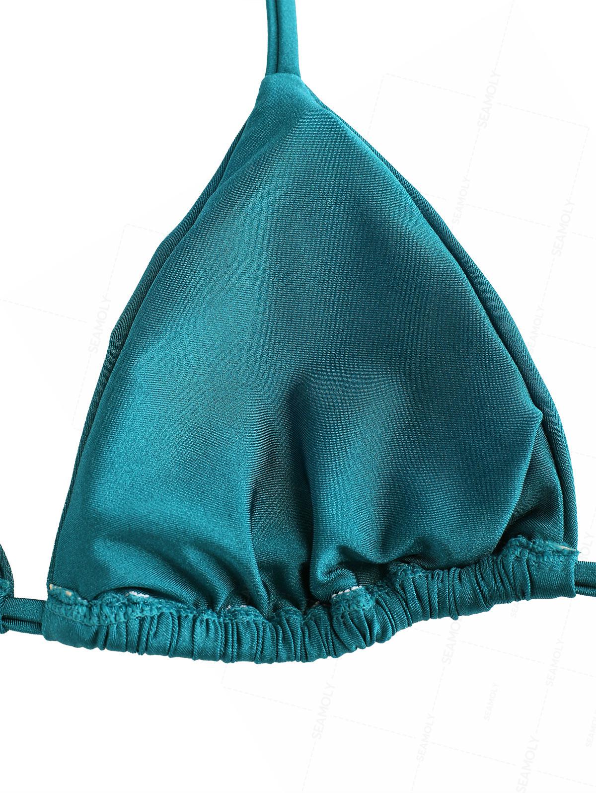 Seamolly Solid Color Ruched Halter Triangle Top & Brazilian Bottom Bikini Set
