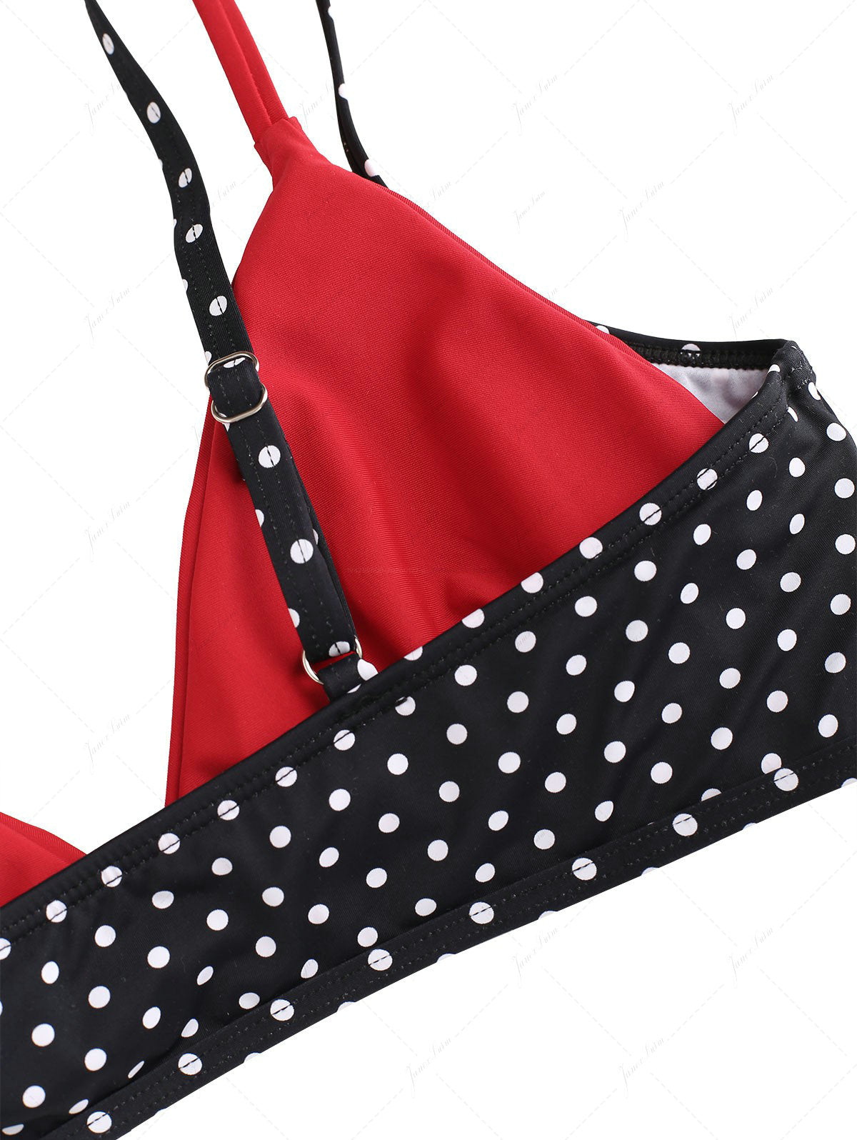 Black Polka Dot Print Contrast Color Double Layer Bikini Top