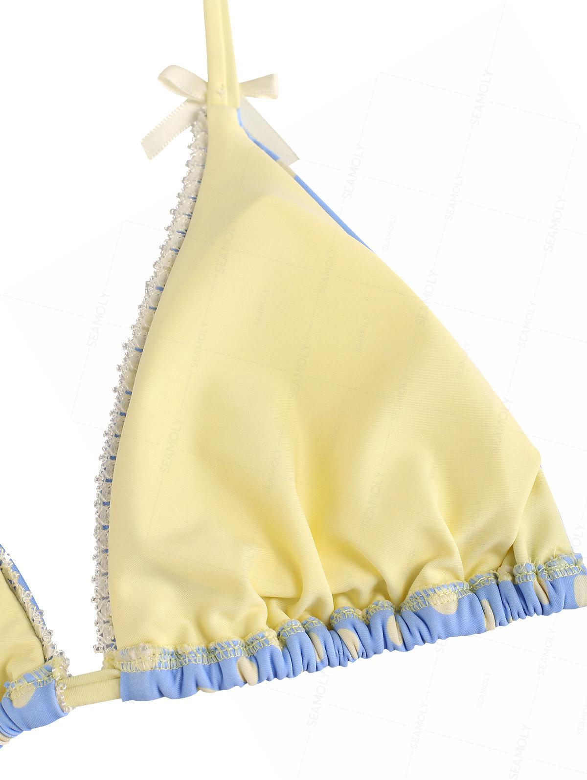 Seamolly Polka Dot Print Lace Bowknot Cheeky Boyshorts Bikini Set