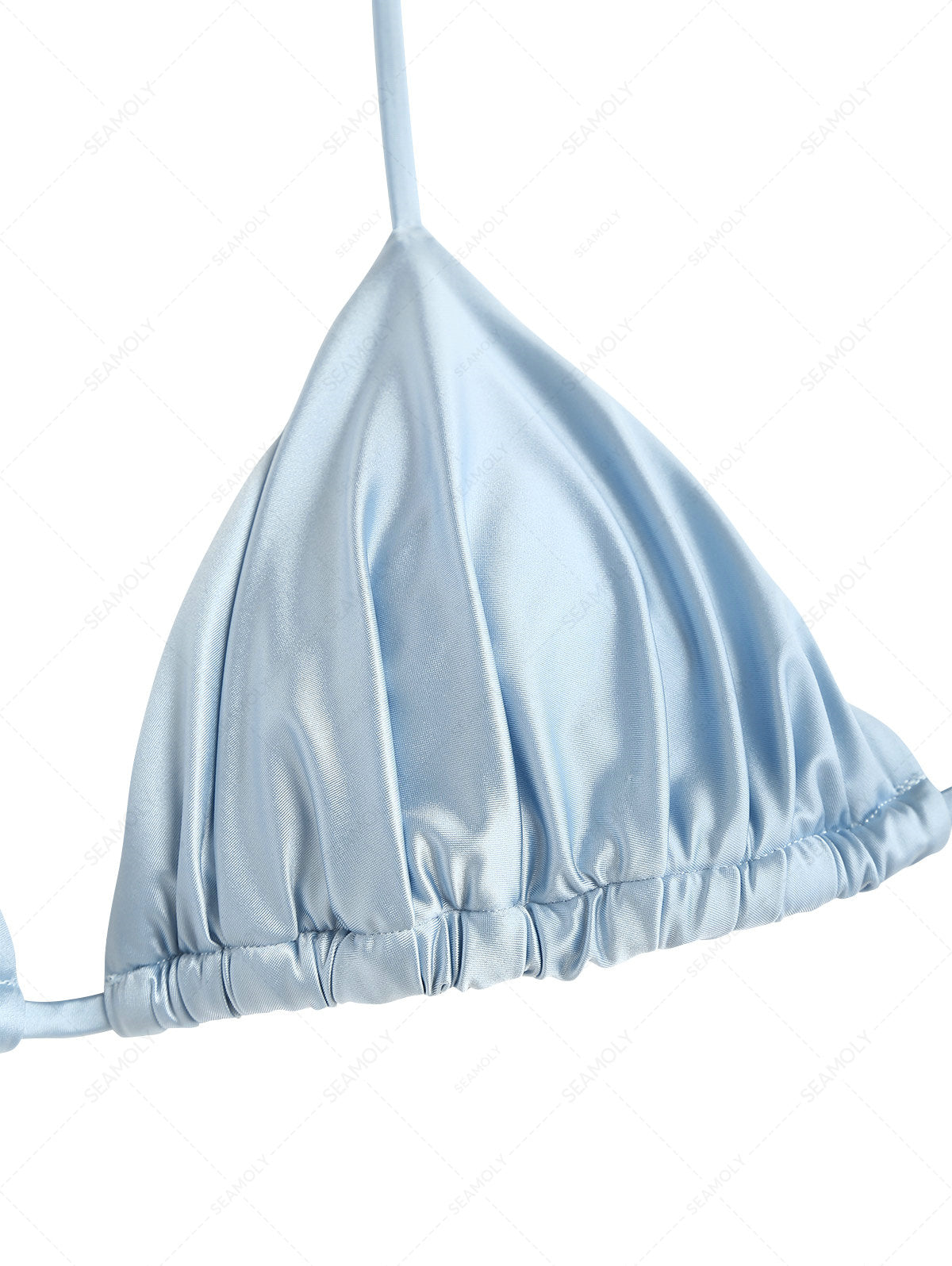 Seamolly Satin Ruched Halter Triangle Top & Cheeky Brazilian Bottom Bikini Set