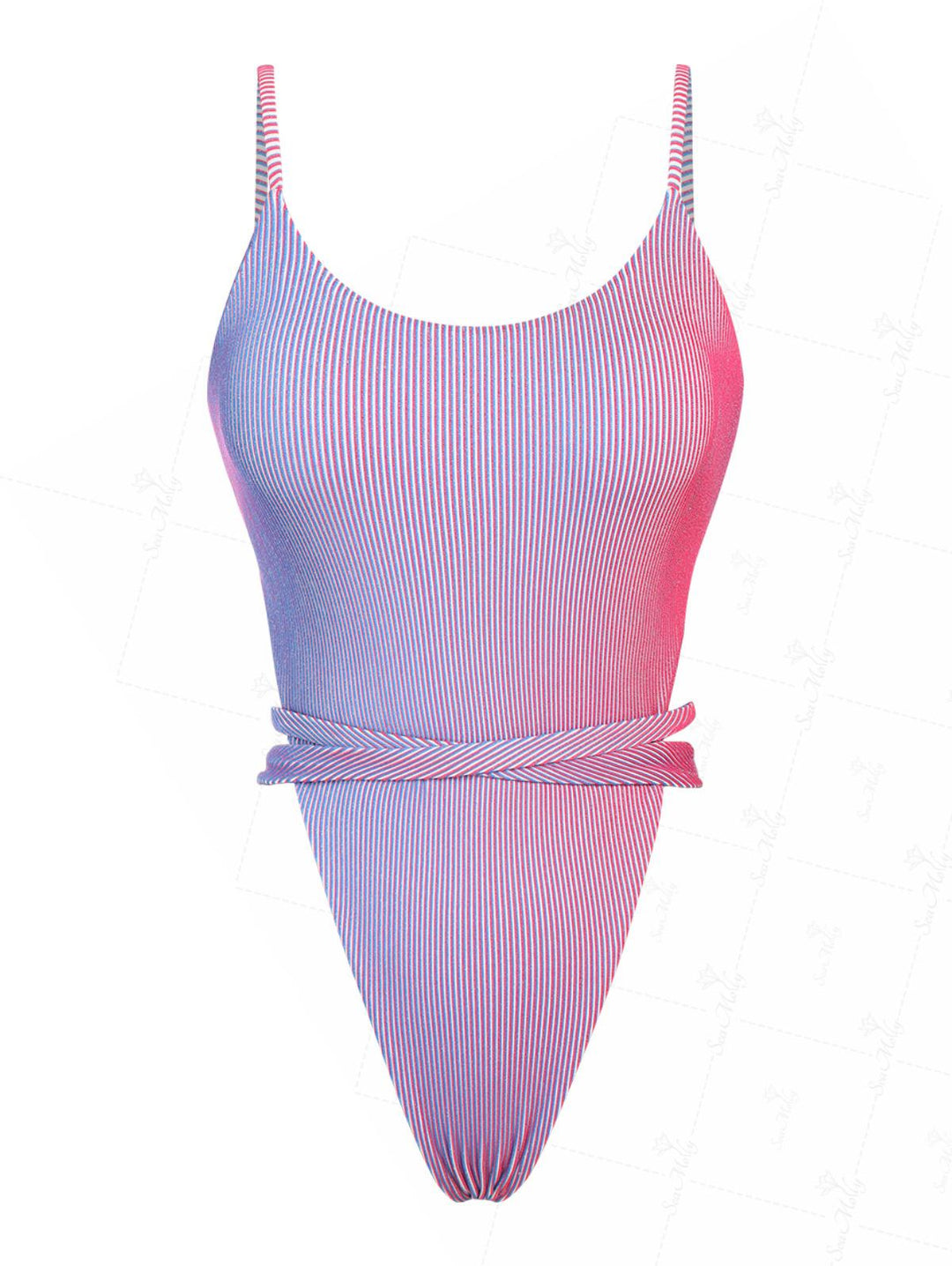 Seamolly Colorful Stripes Tie Around Crisscross Backless One-piece Swimsuit