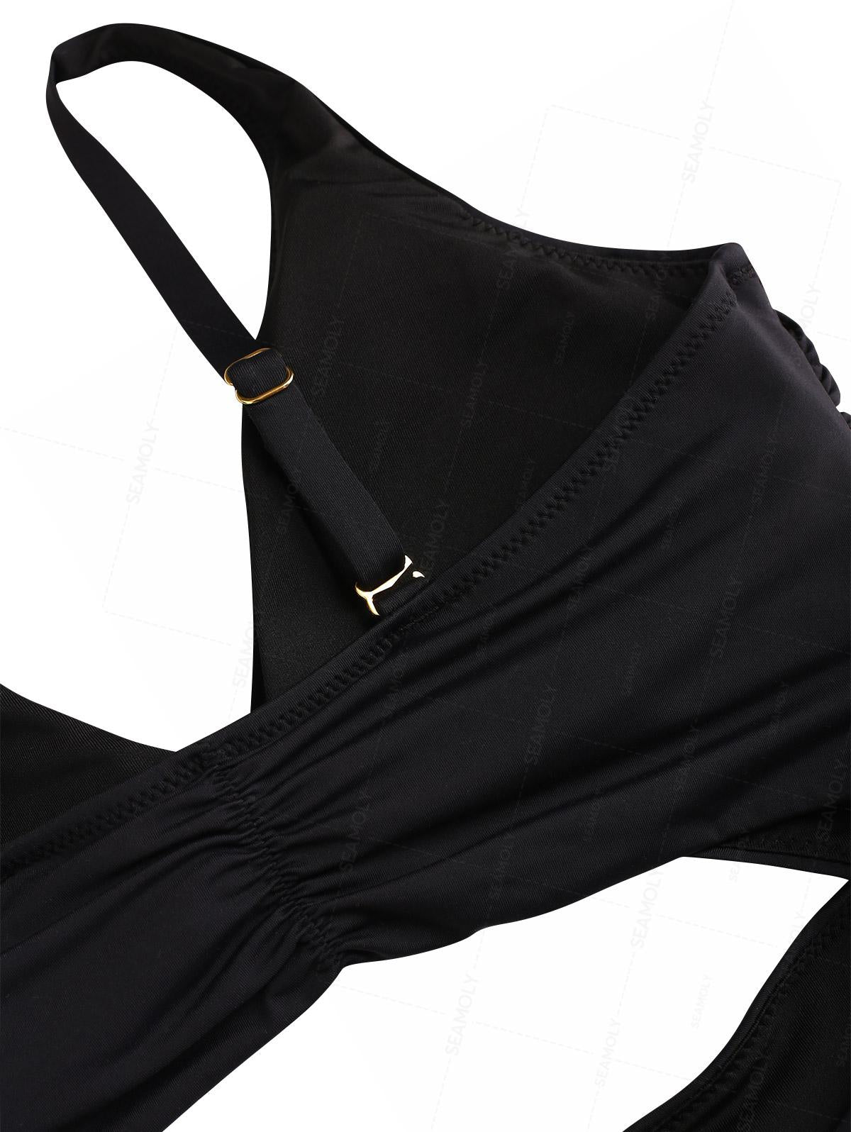 Seamolly Solid Color Twisted Cutout Ruched Tummy Control One-piece Swimsuit
