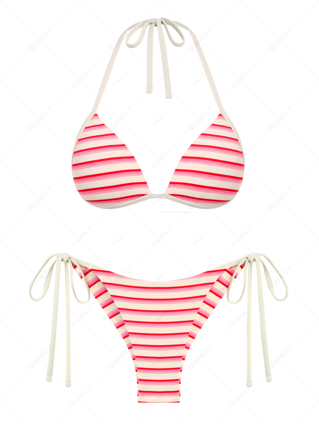 Seamolly Striped Triangle Push Up Top & Cheeky Brazilian Bottom Bikini Set