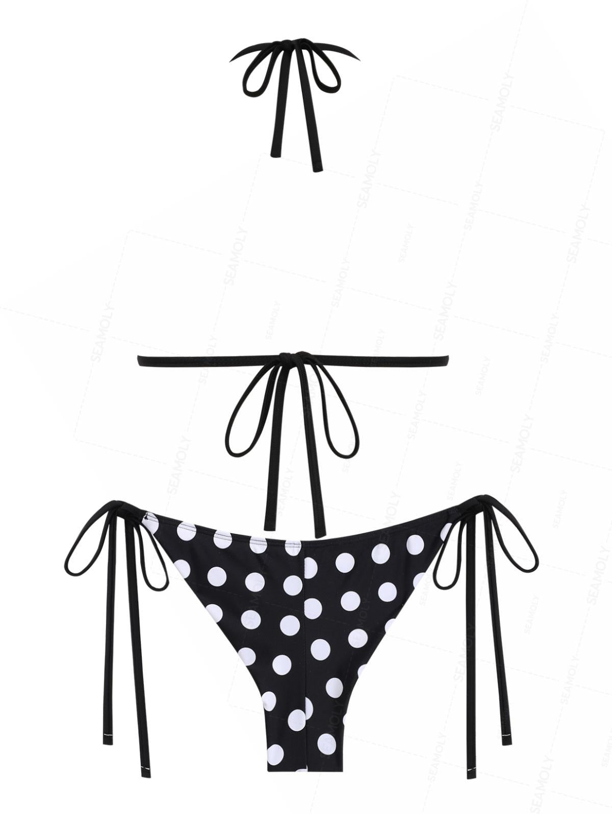 Seamolly Polka Dot Molded Cups Support Triangle Top & Brazilian Bottom Bikini Set