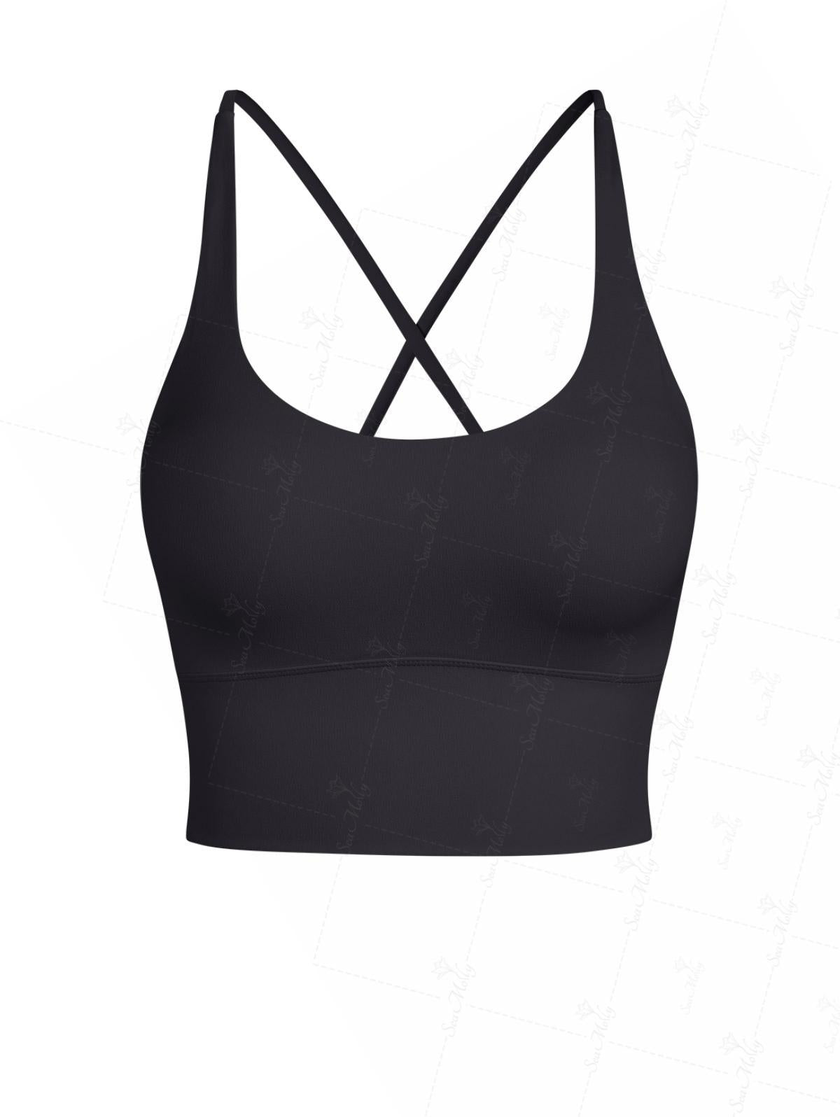 Solid Color Padded Criss Cross Open Back Sports Yoga Tank Top