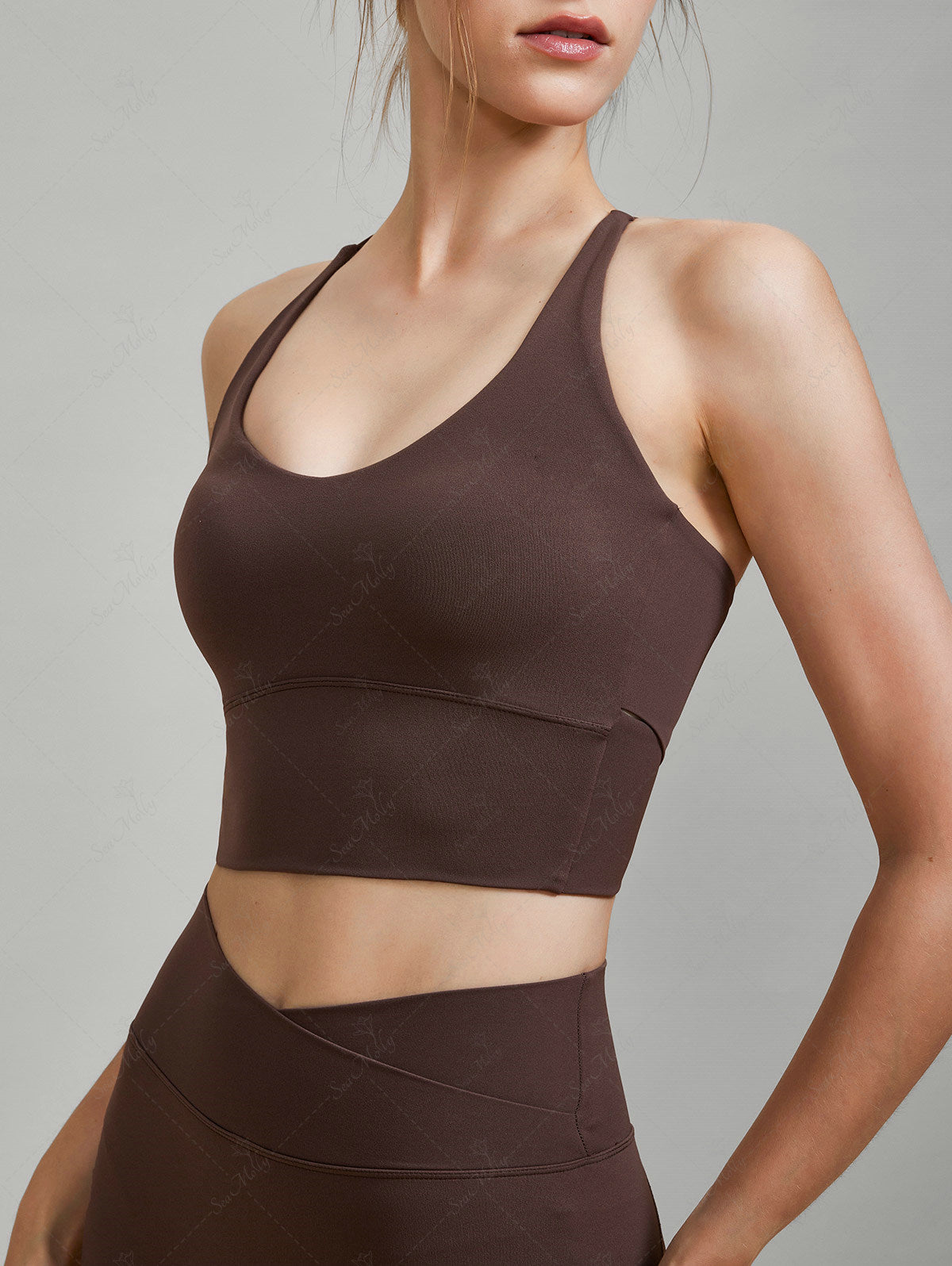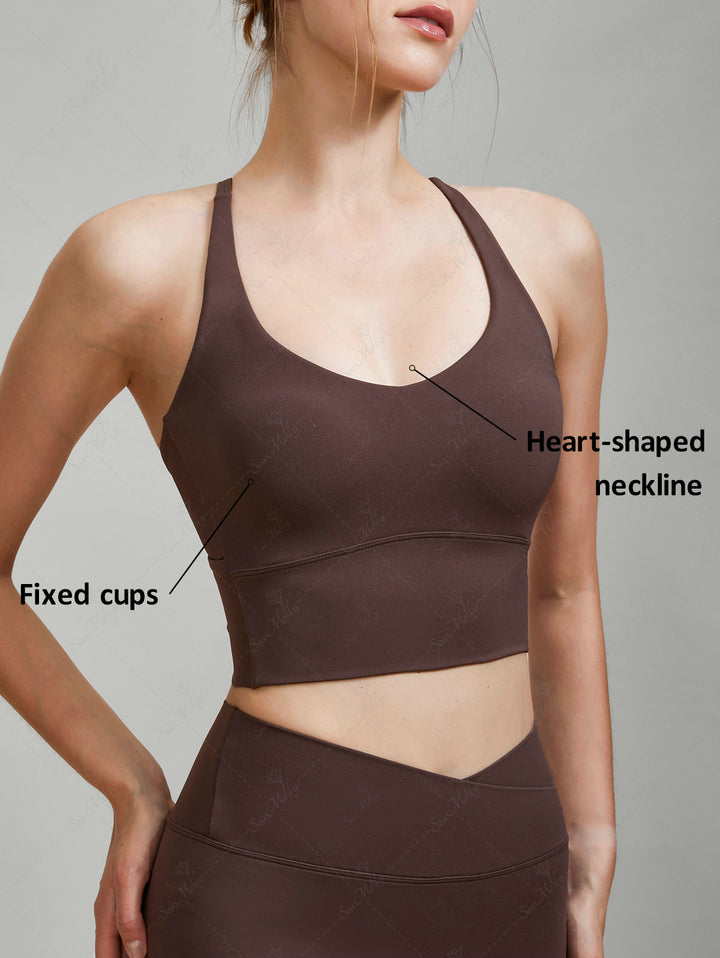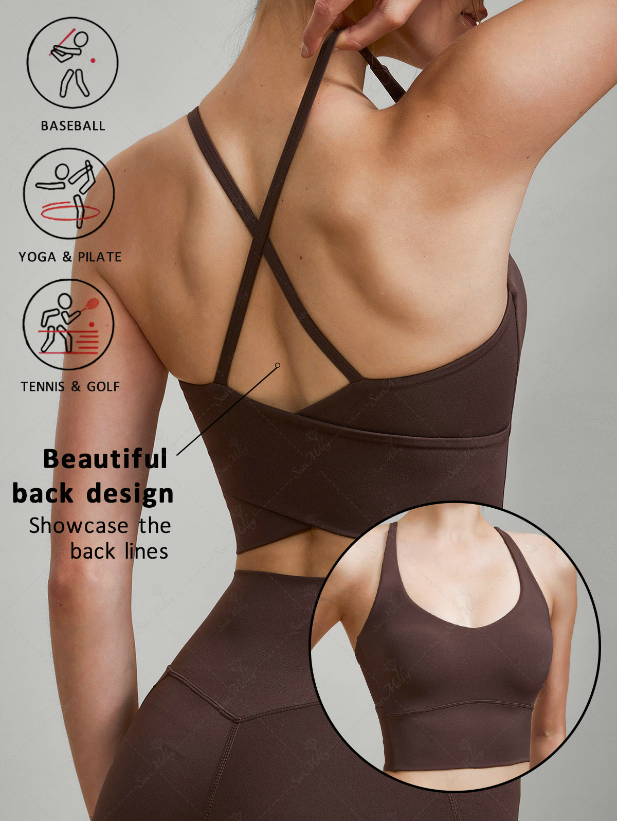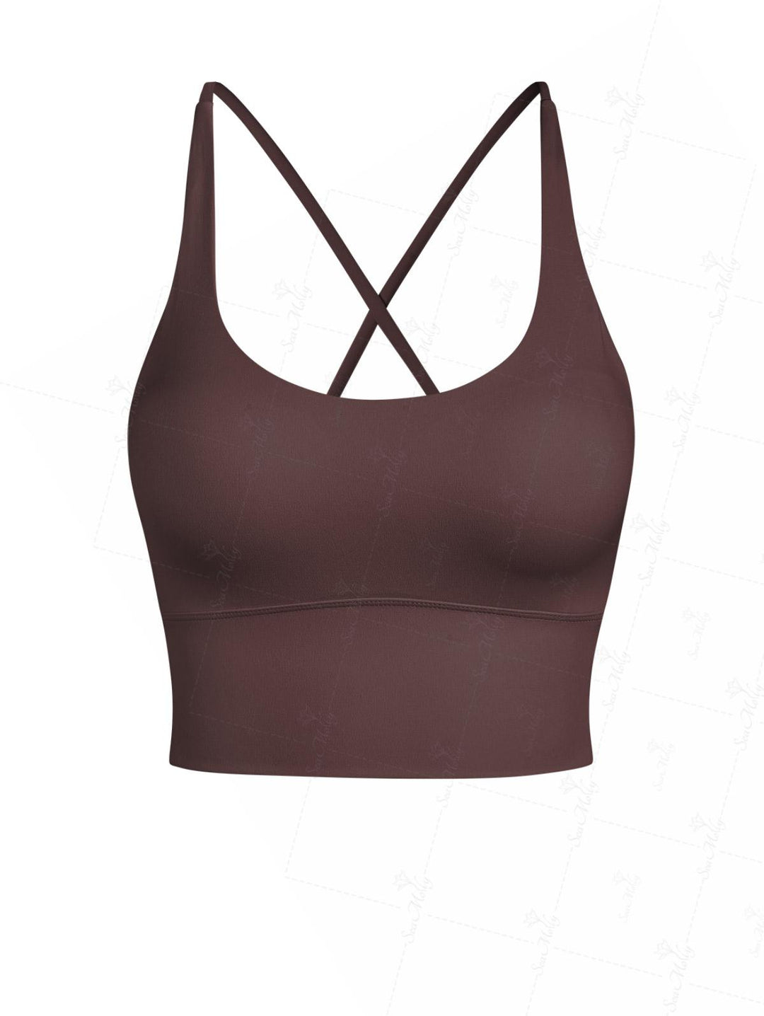 Solid Color Padded Criss Cross Open Back Sports Yoga Tank Top