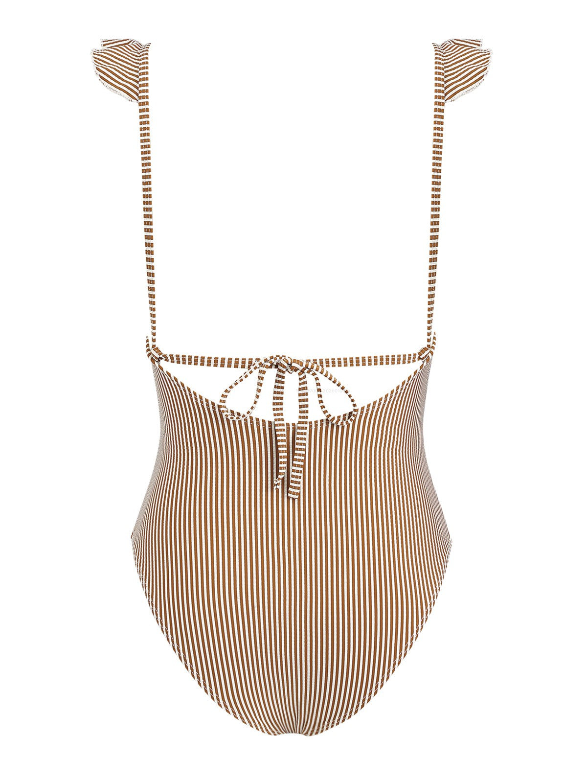 Coffee Striped Ruffles Trim Tied Plunging Neck One-piece Swimsuit