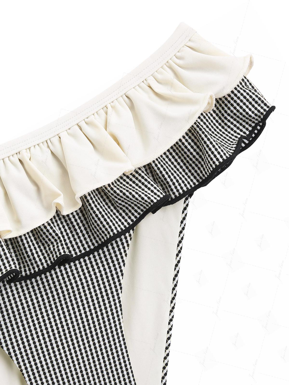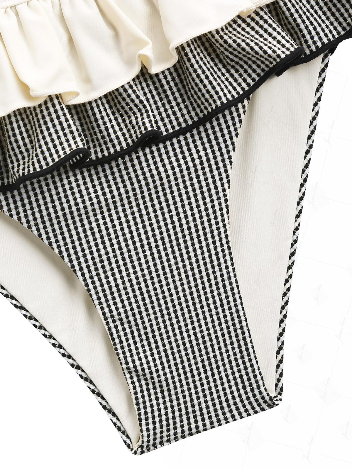 Crystal Cream Metallic Gold Yarn Knitted Fabric Layered Peplum Skirted Bikini Bottom