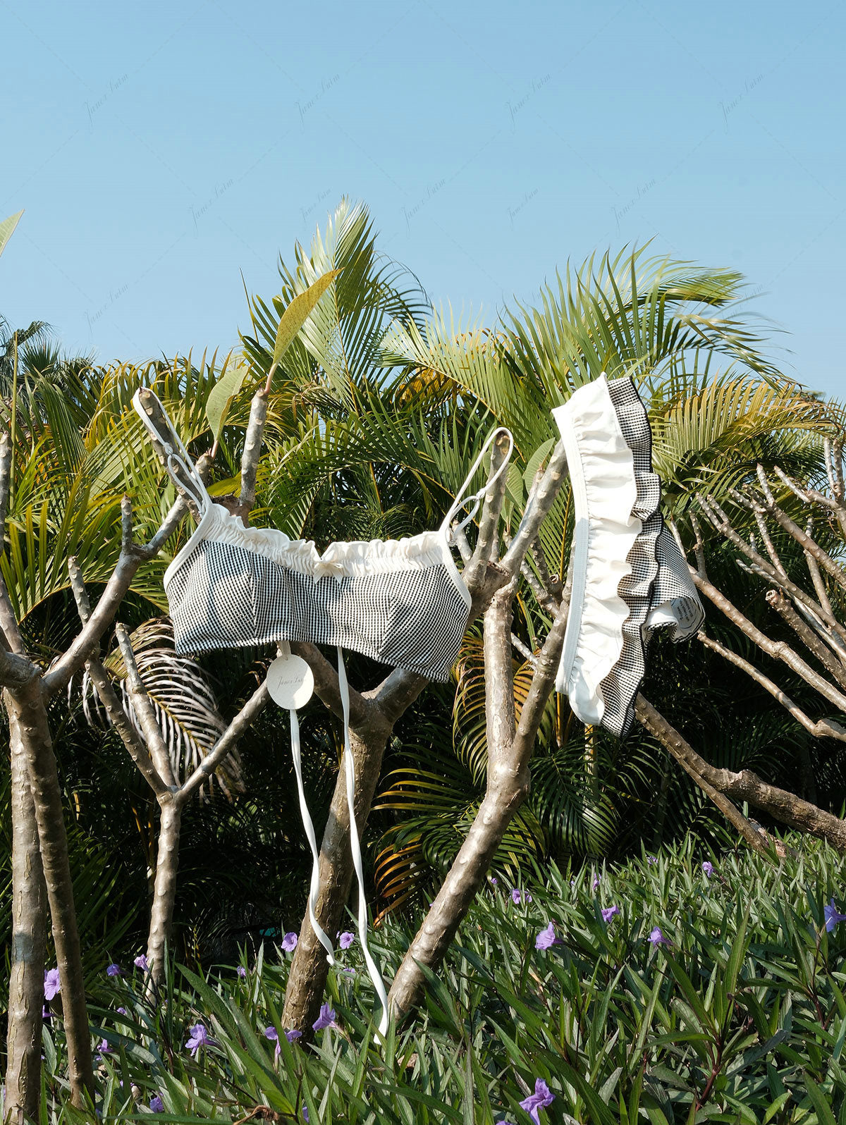 Cold gentle hand wash ONLY for all our pieces is recommended - no bleach, please! To dry, please hang or lay flat in a shady area. Do not put your swimwear in the dryer (not even on a gentle cycle!) as this can damage, distort, or discolour your bikini!