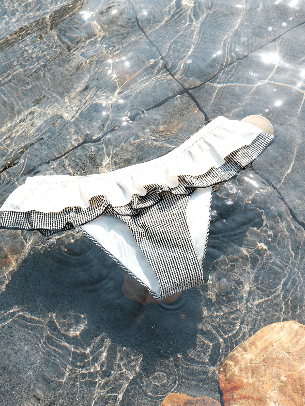 Hot tubs & chlorinated pools can affect our kinis – chlorine may fade colours, weaken fabric, and reduce elasticity over time. If you do take a dip, be sure to rinse your swimwear in cold, fresh water right after to help minimise damage.