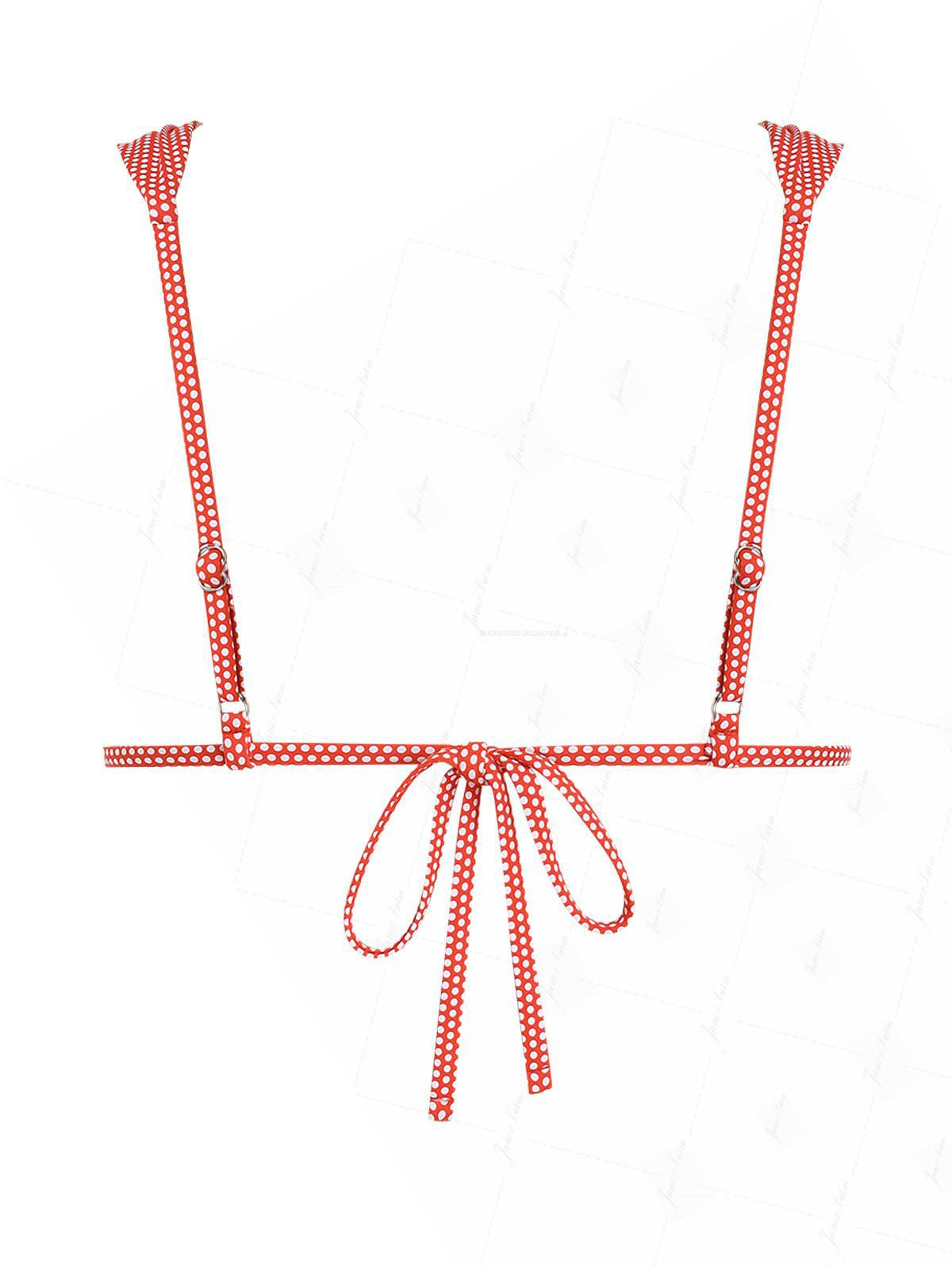 Cherry Red Polka Dot Print Ruched Triangle Bikini Top