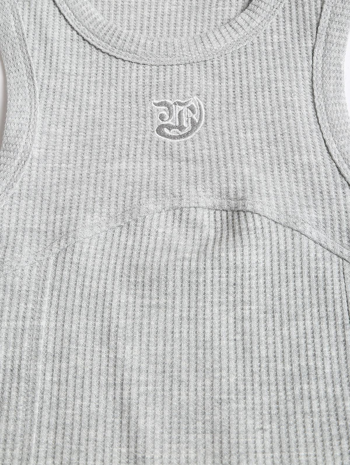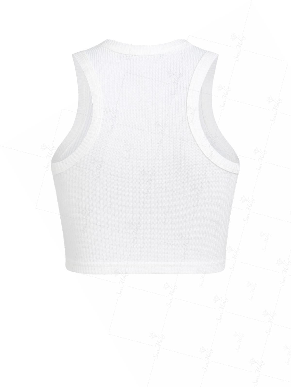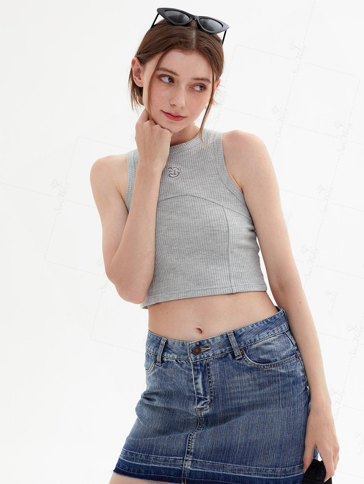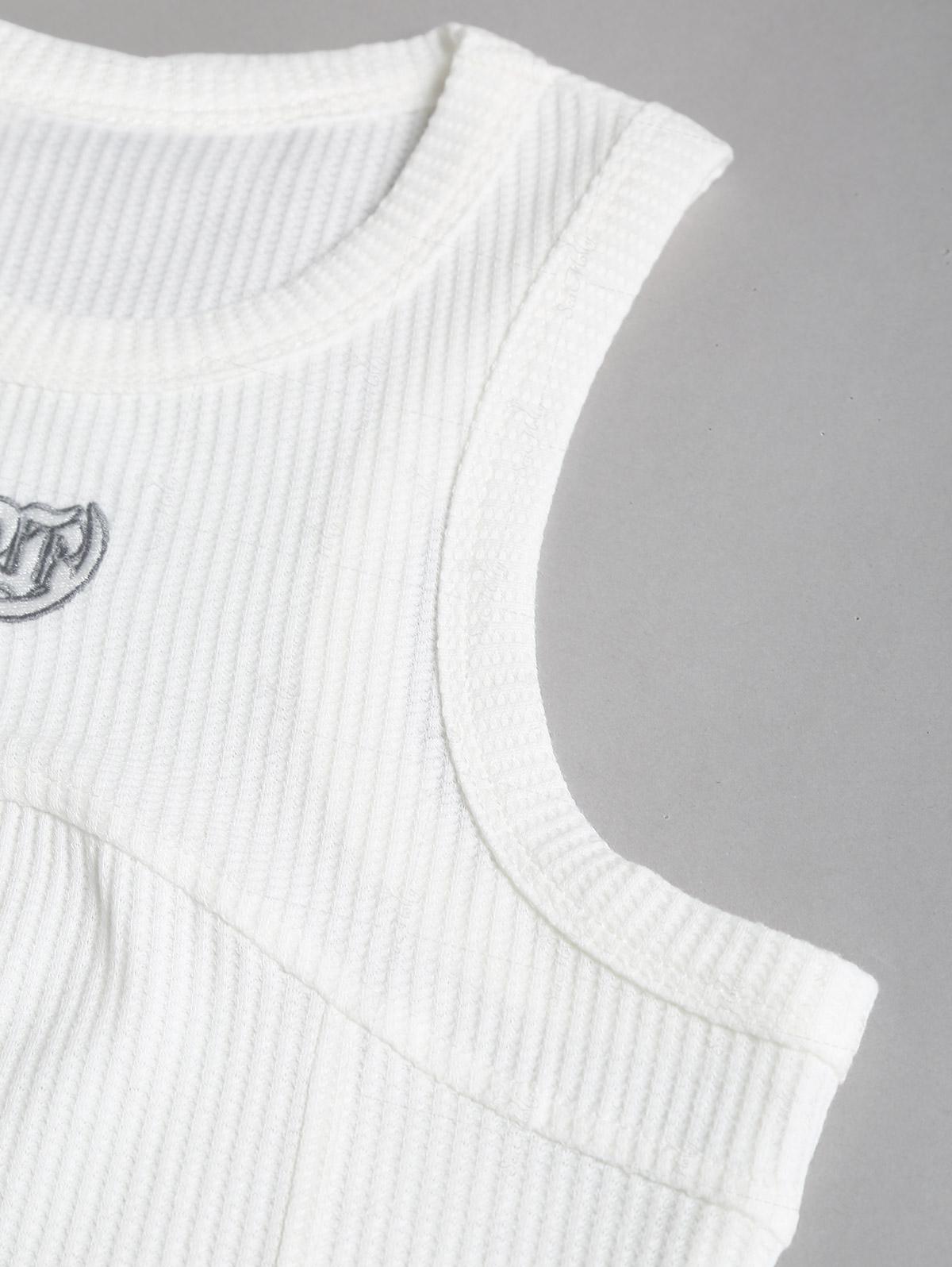 Seam Detail Embroidery Design Racerback Crew Neck Slim Fit Crop Tank Top