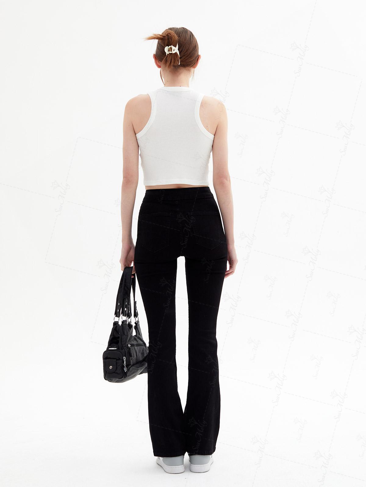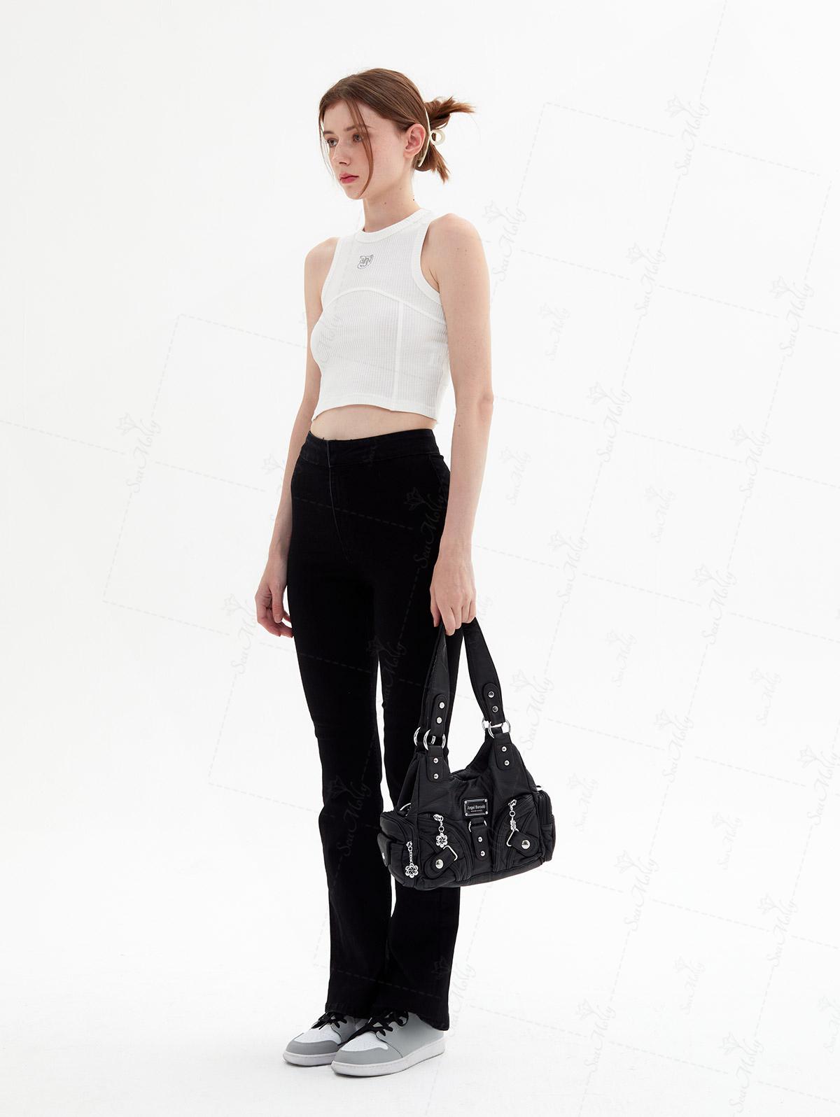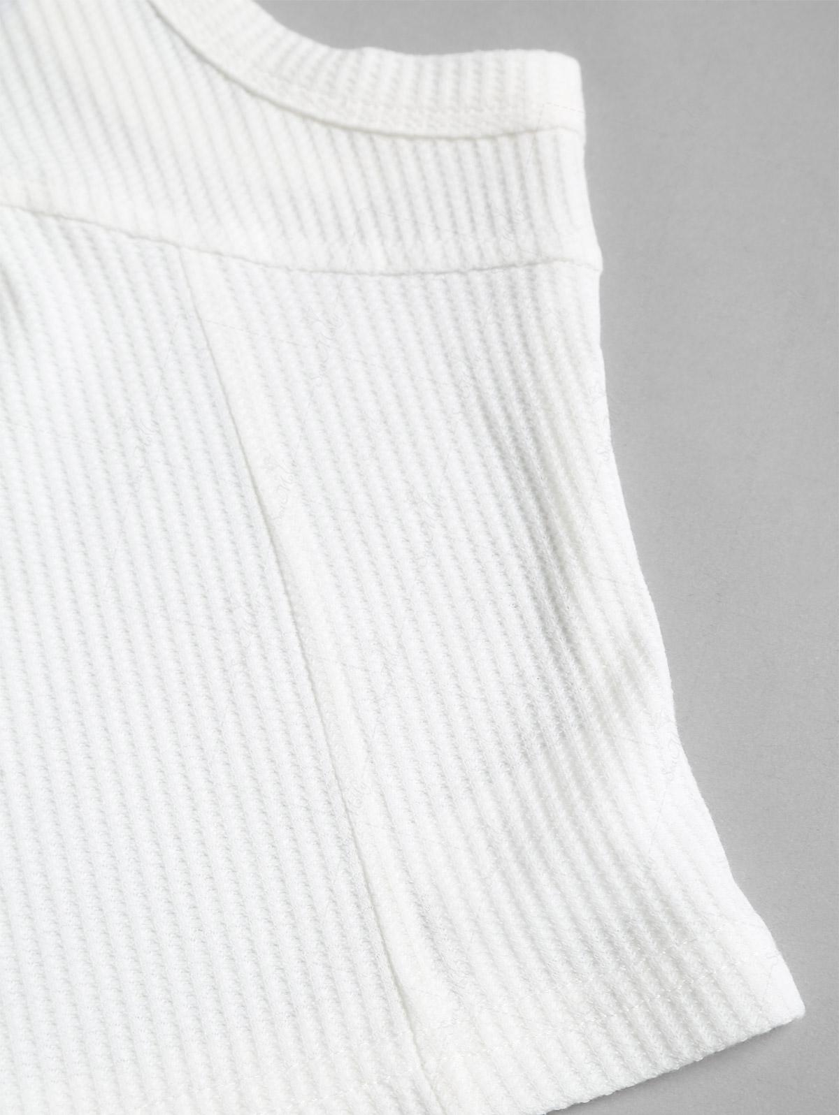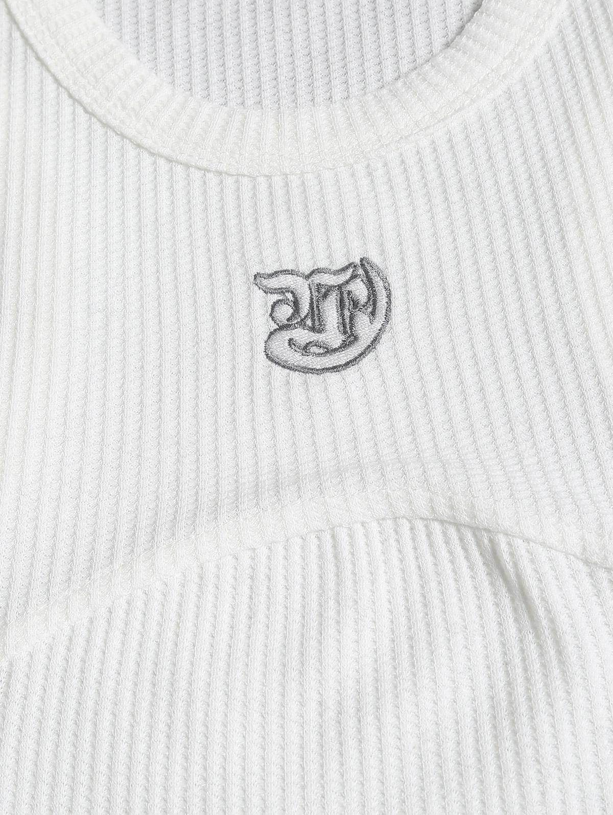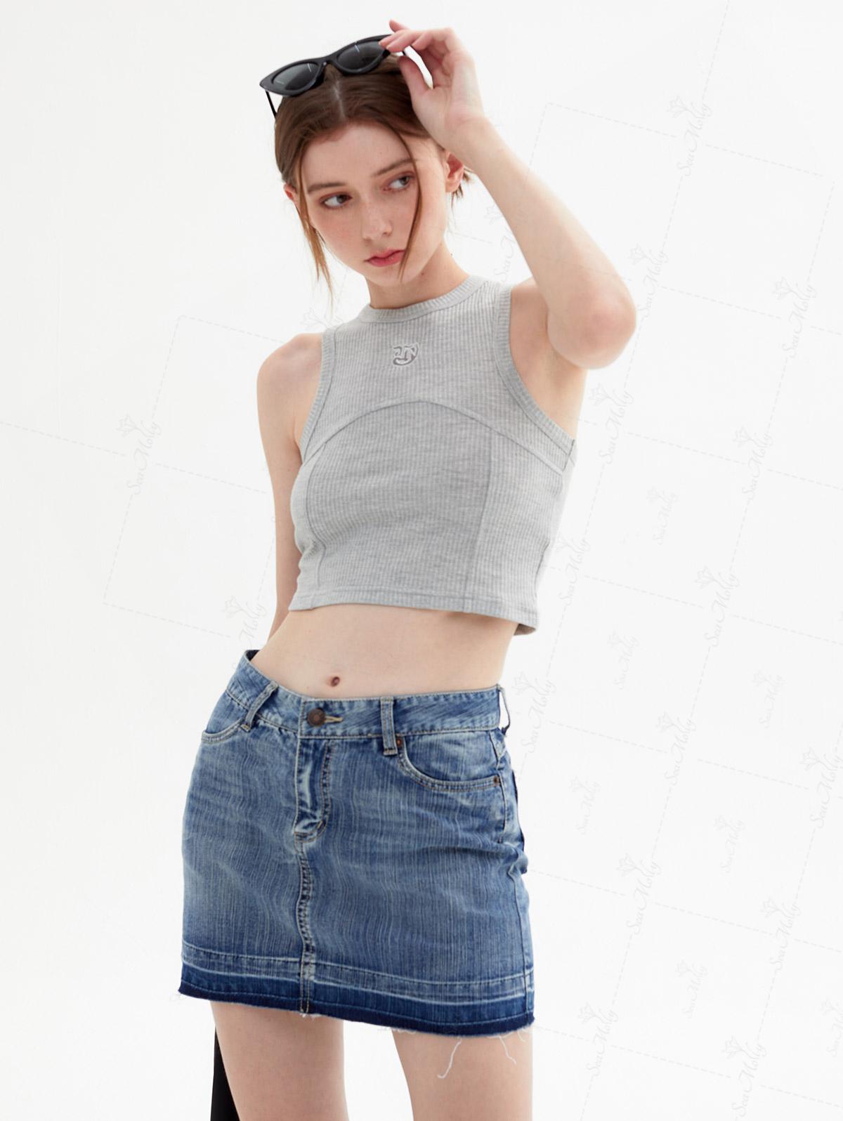 Seam Detail Embroidery Design Racerback Crew Neck Slim Fit Crop Tank Top