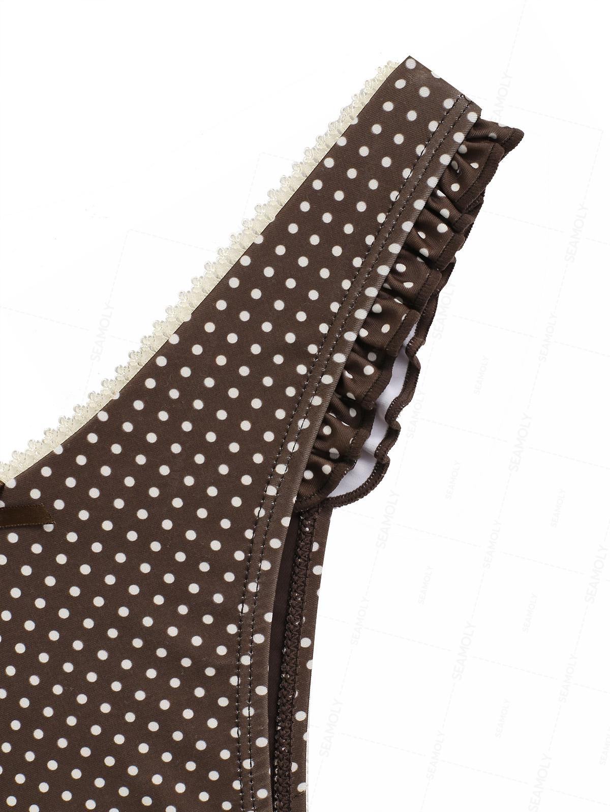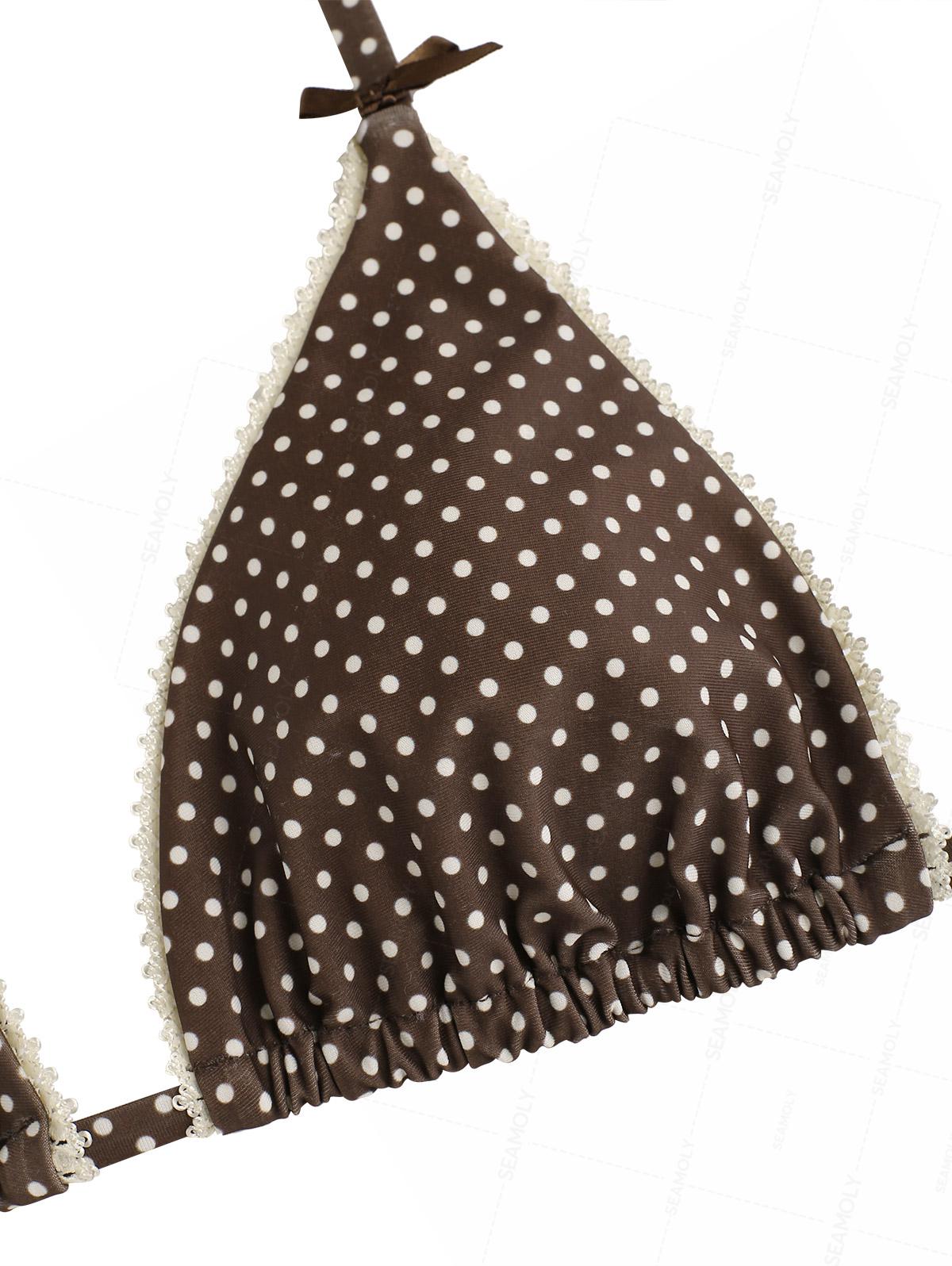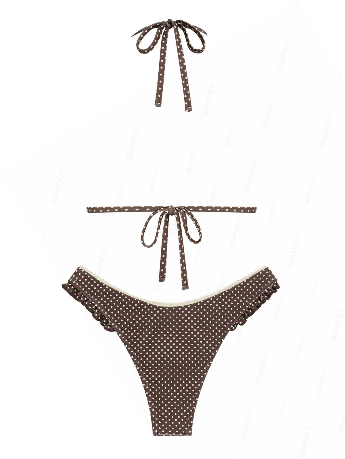 Seamolly Polka Dot Lace Bowknot Ruffles Trim Halter Triangle Bikini Set