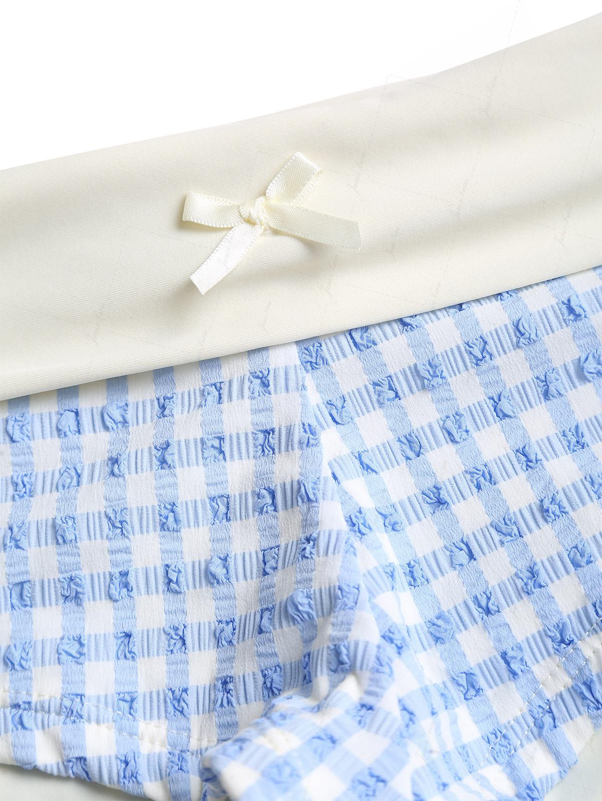 Light Blue Bubble Grid Textured Contrast Foldover Bikini Bottom Cheeky Swim Boyshorts