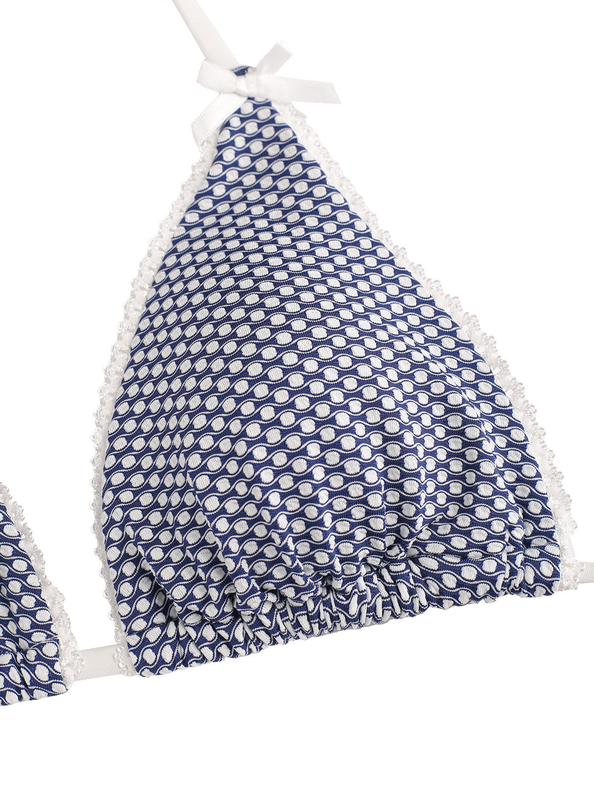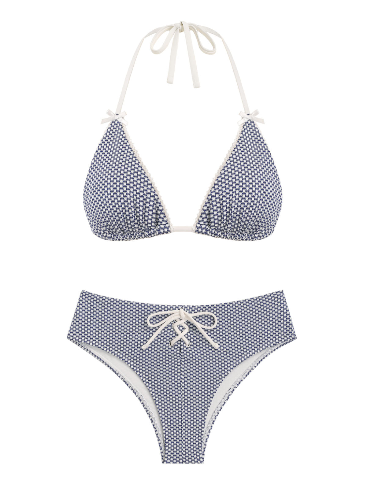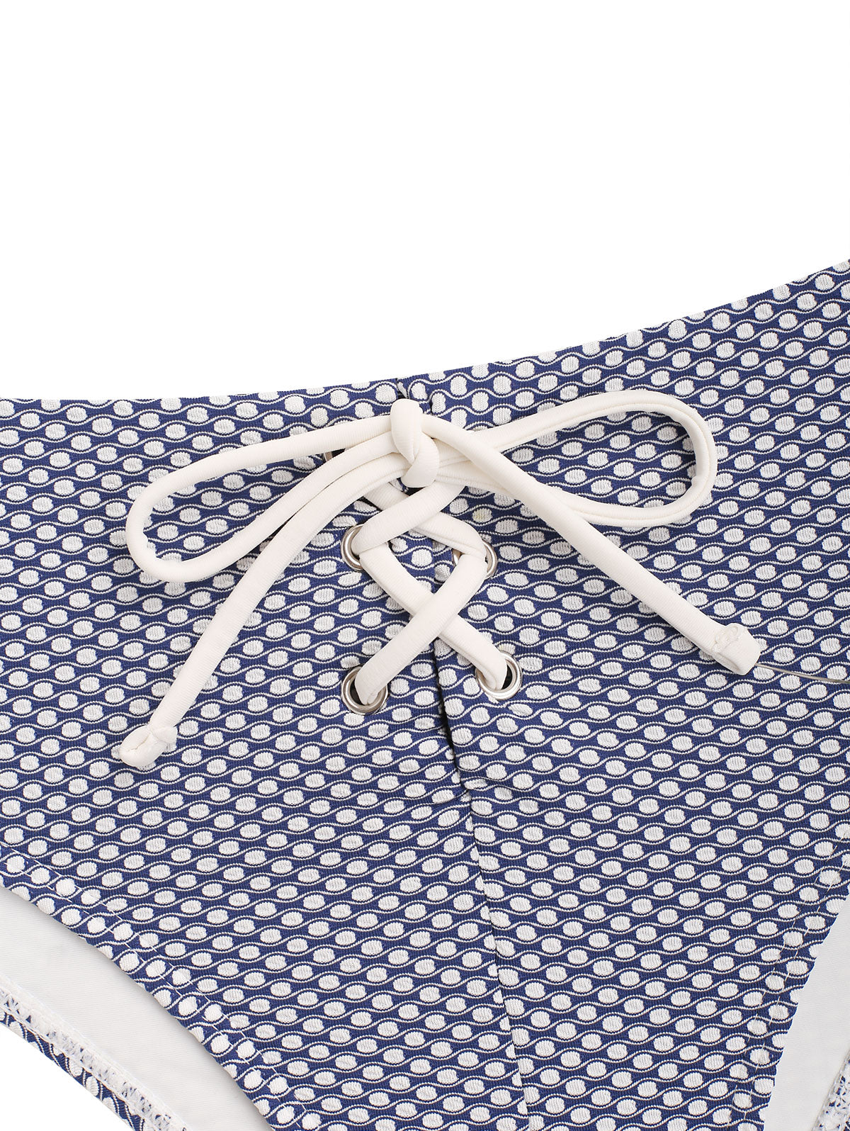 Seamolly Contrast Color Polka Dot Lace Up Cheeky Bikini Set