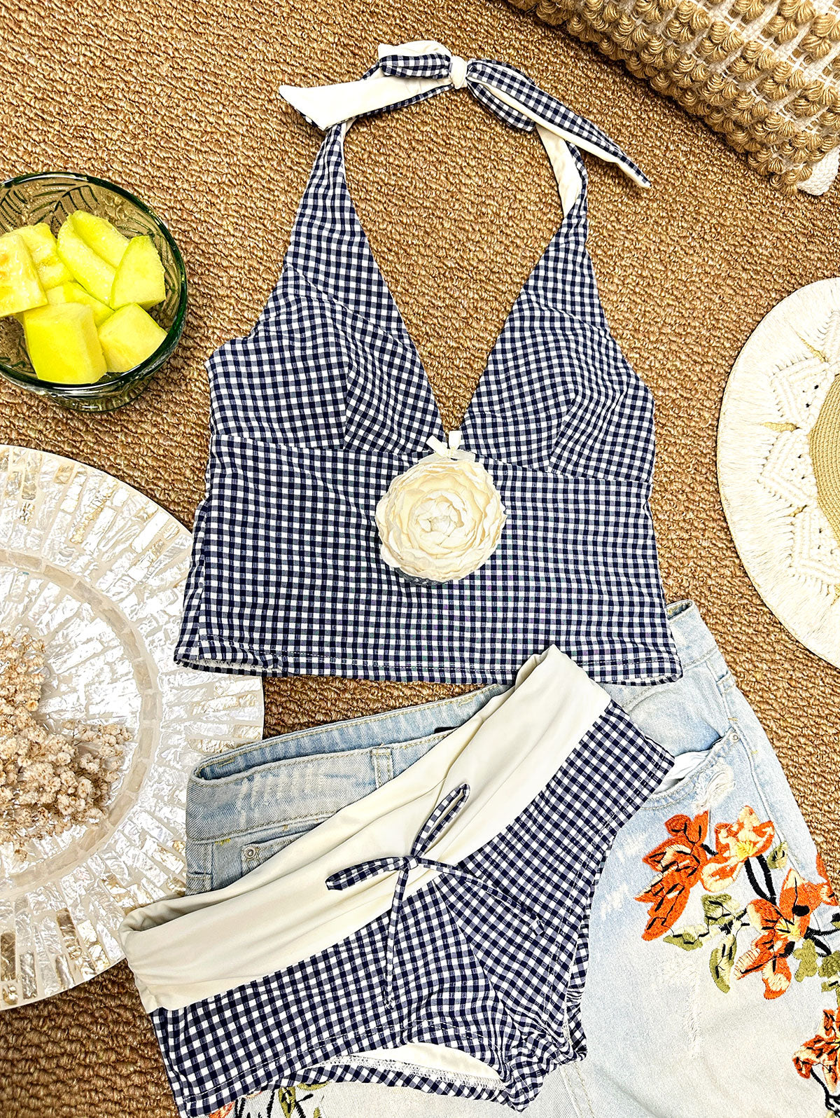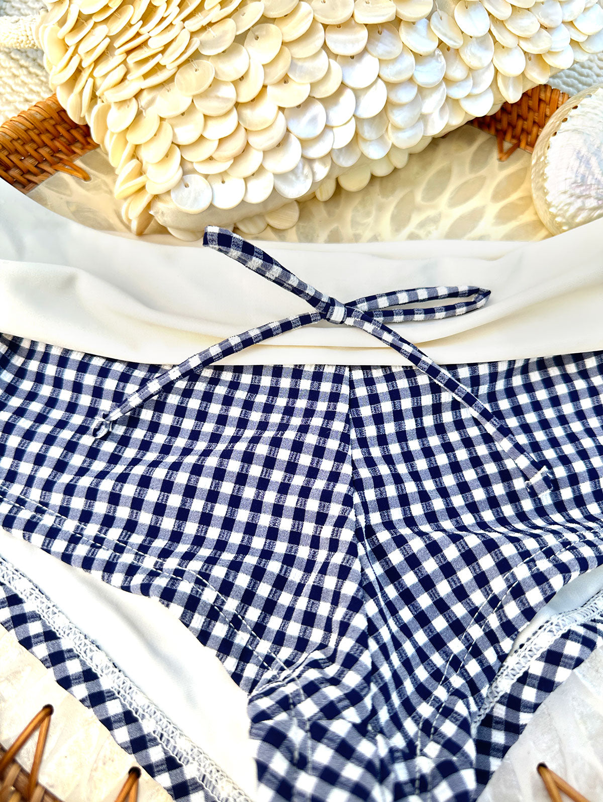 Seamolly Gingham Textured Foldover Bikini Bottom Cheeky Swim Boyshorts