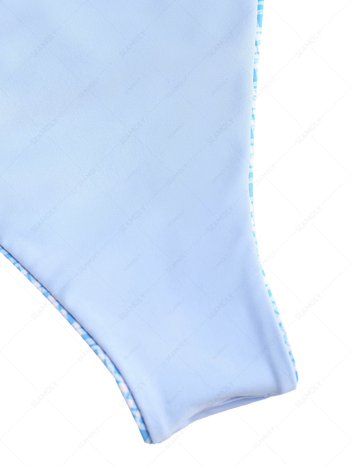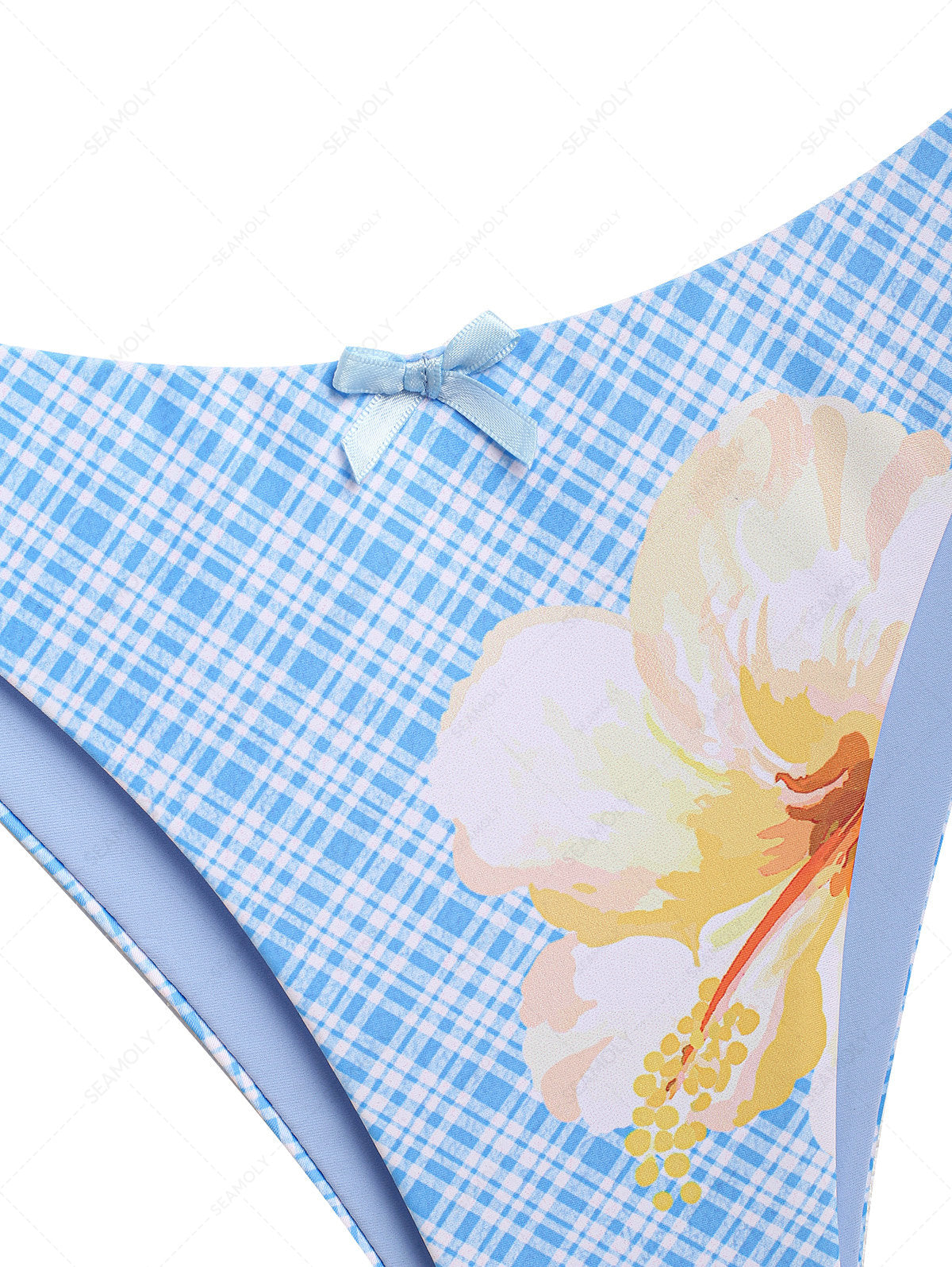 Light Blue Plaid Floral Bowknot Cheeky Bikini Bottom