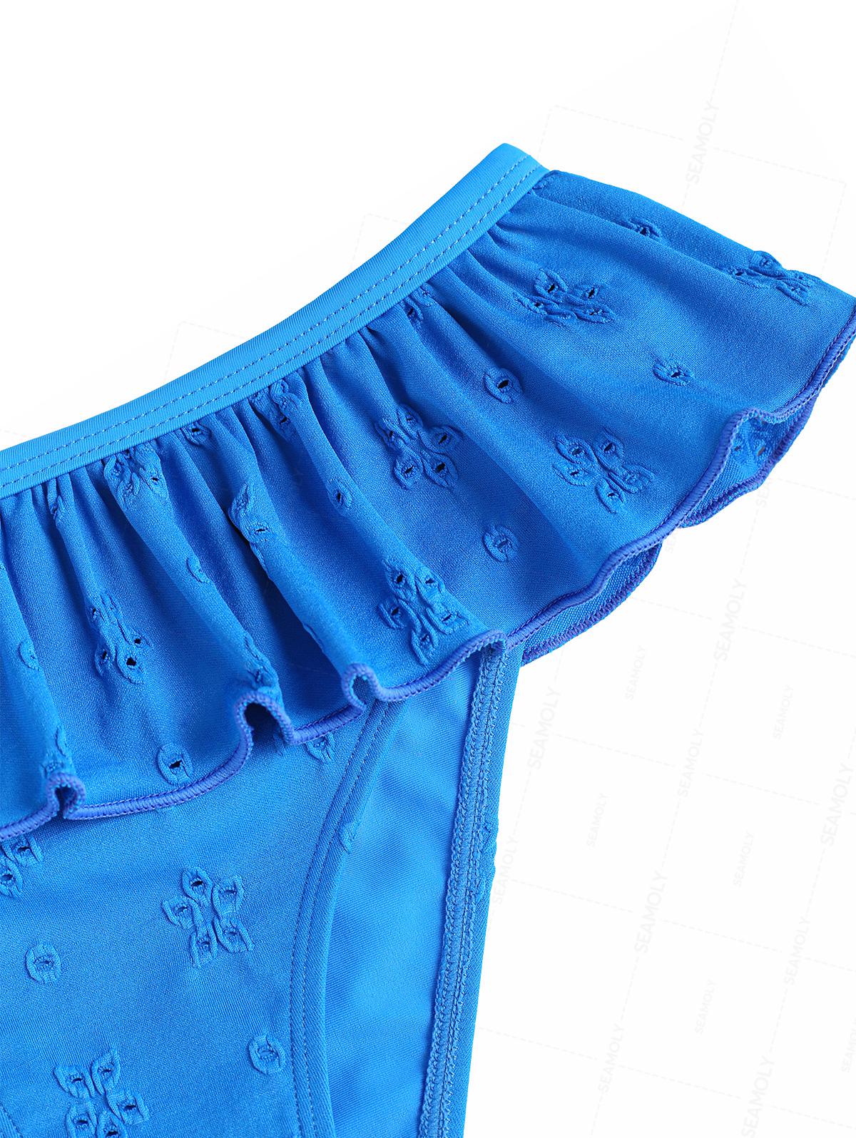 Seamolly Recycled Fabric Floral Jacquard Peplum Skirted Low Rise Bikini Bottom