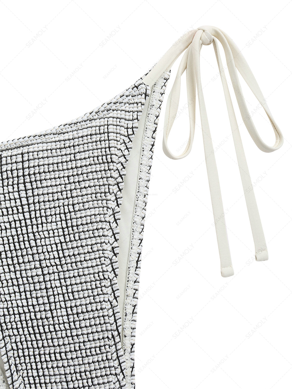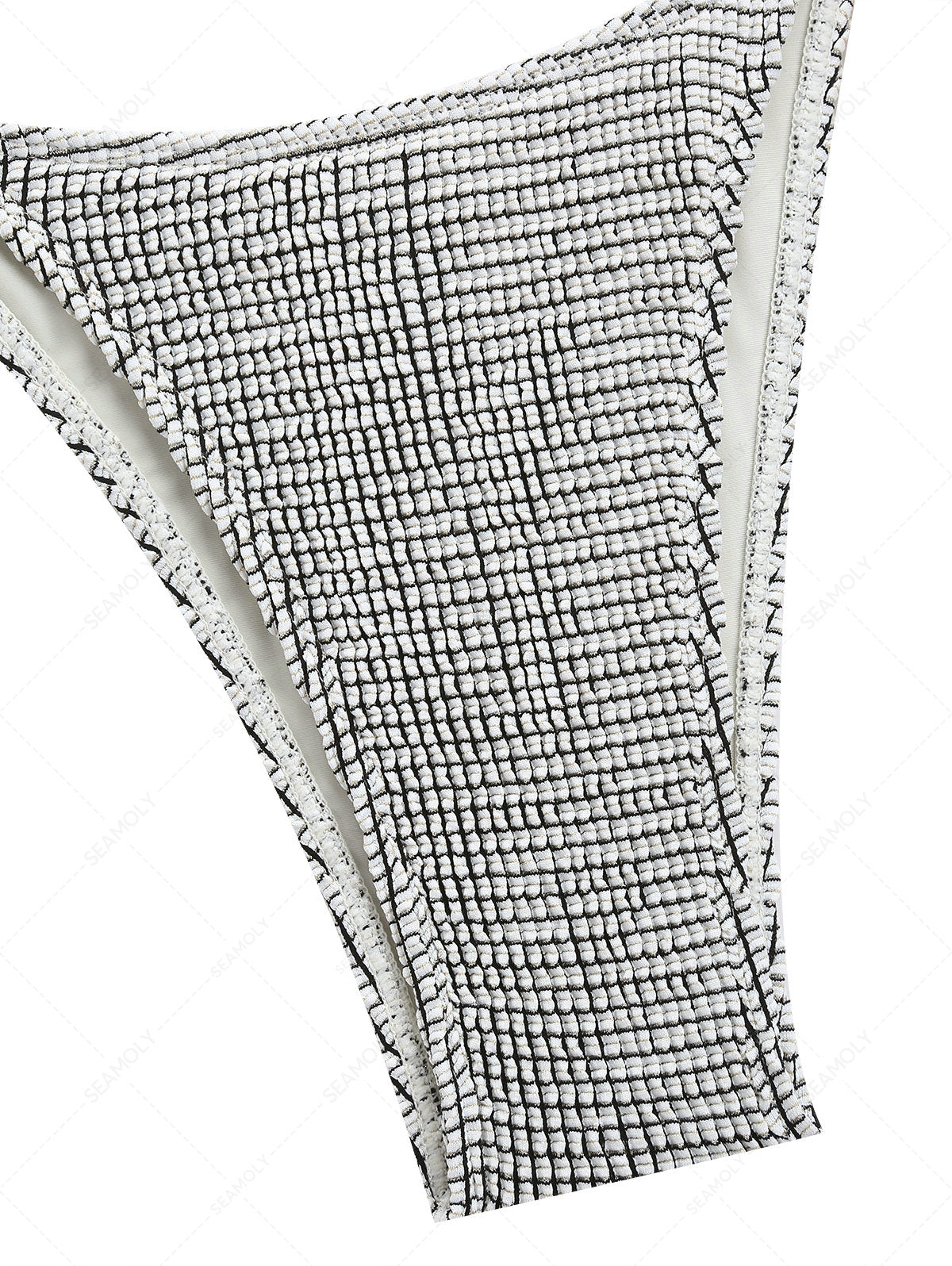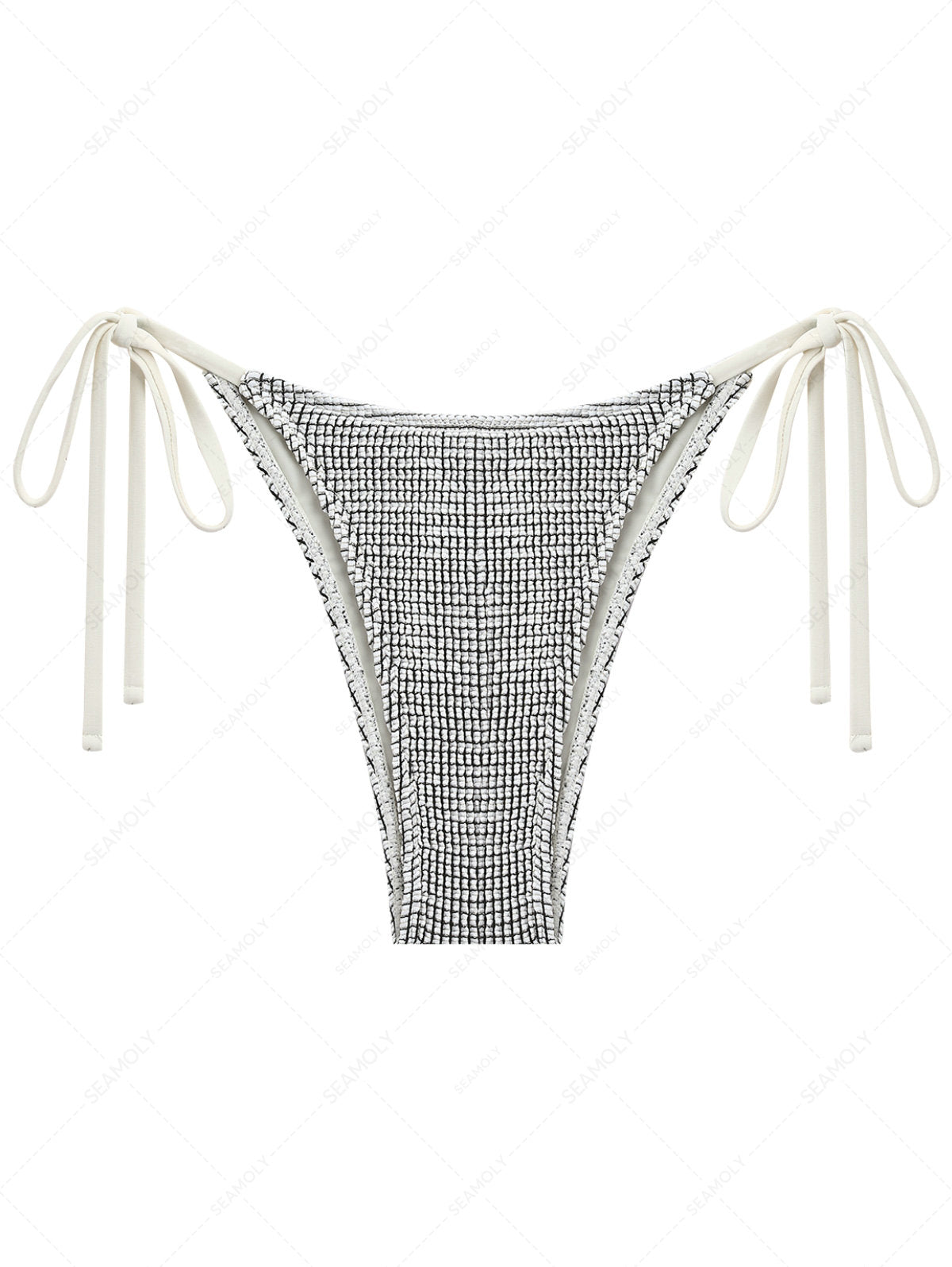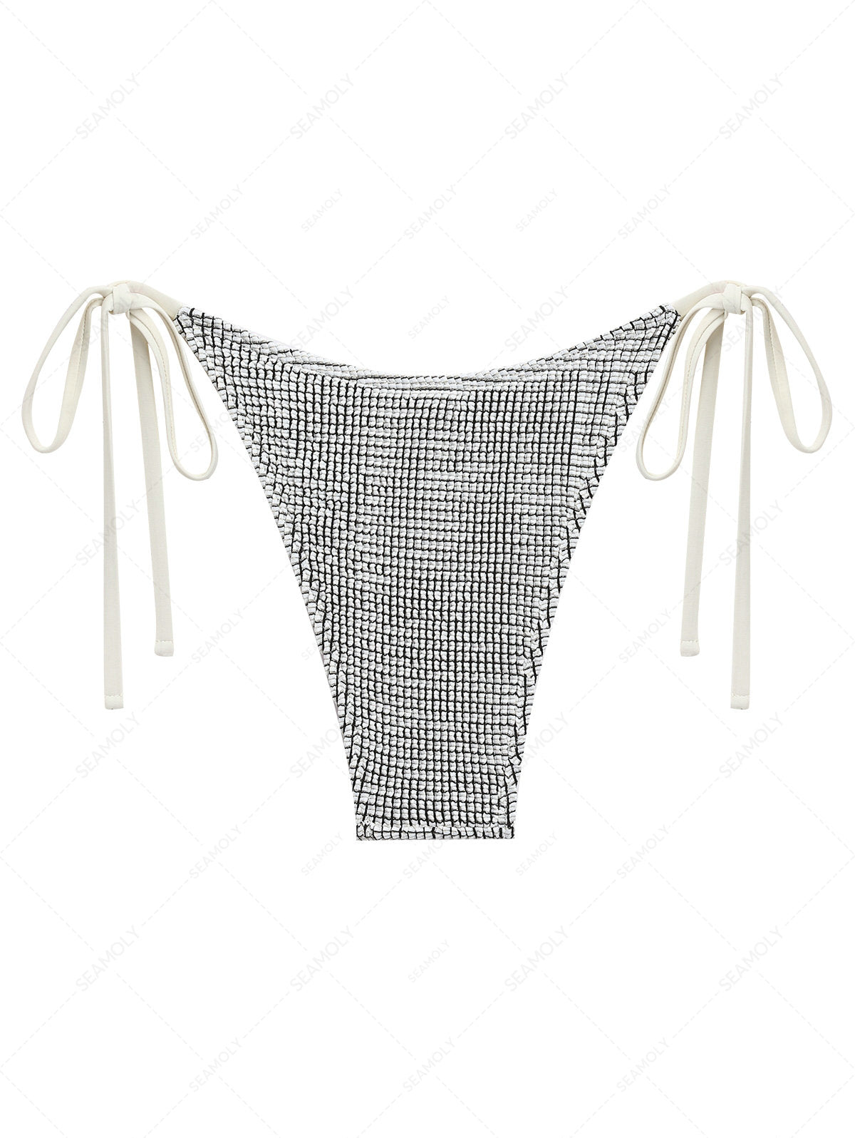 White Textured Fabric Tie Side String Cheeky Bikini Bottom