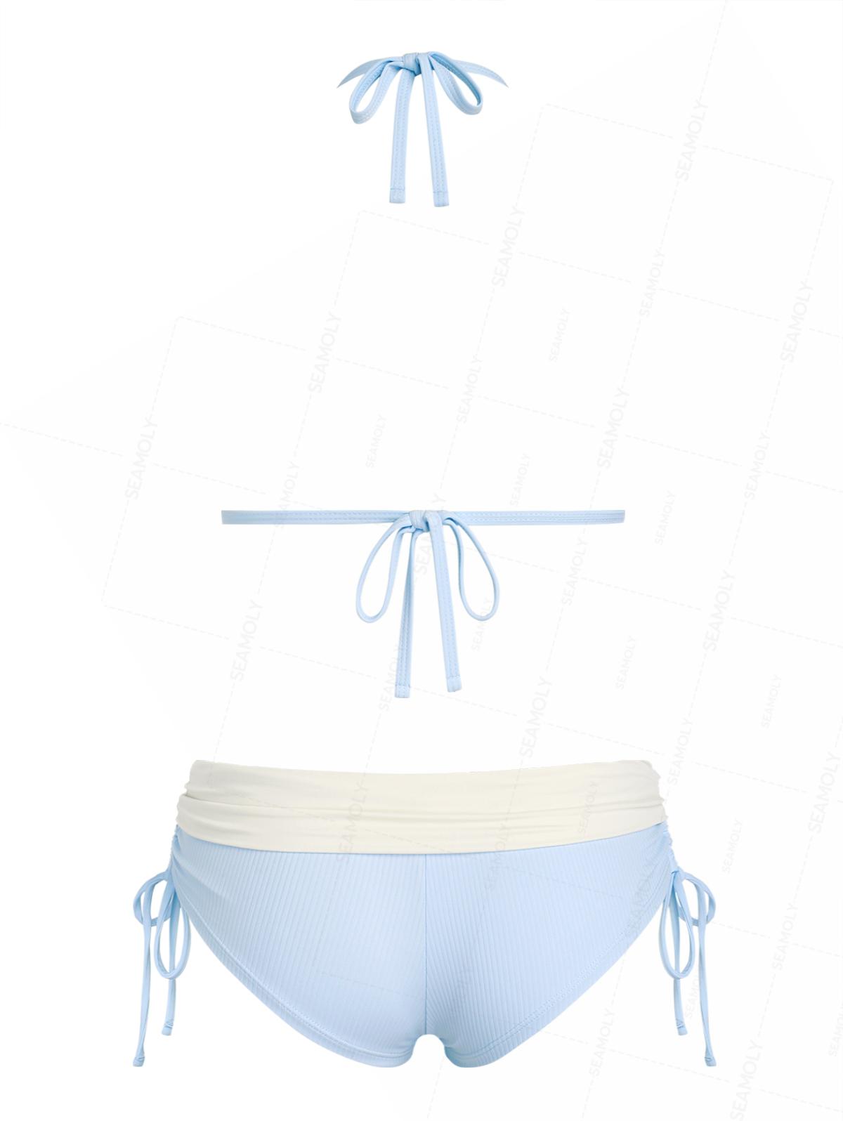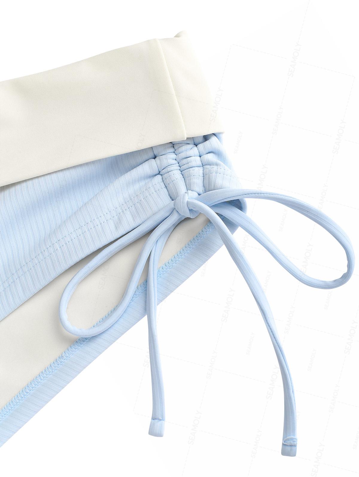 Seamolly Y2K Ribbed Hard Cups Support Cinched Foldover Boyshorts Bikini Set