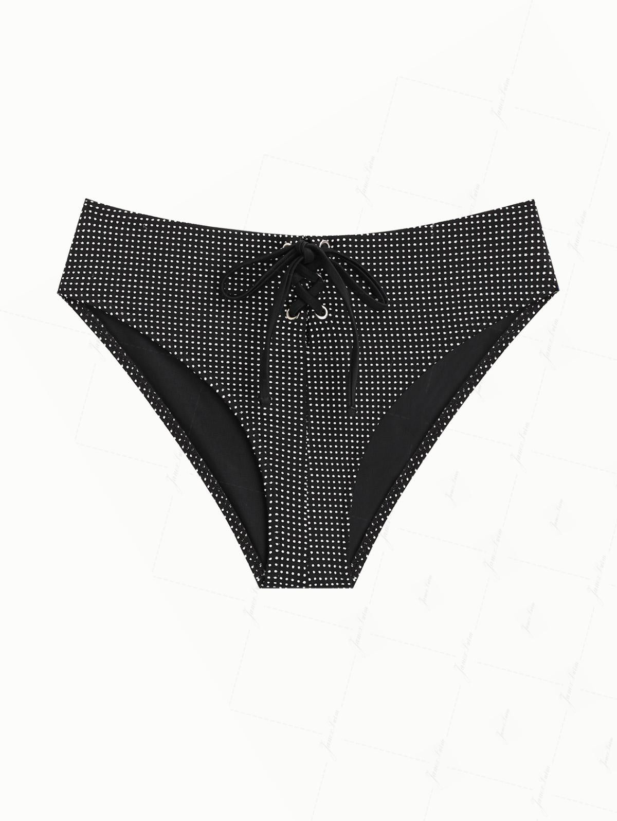 Black Pin Dot Jacquard Grommet Lace Up Bowknot Bikini Bottom