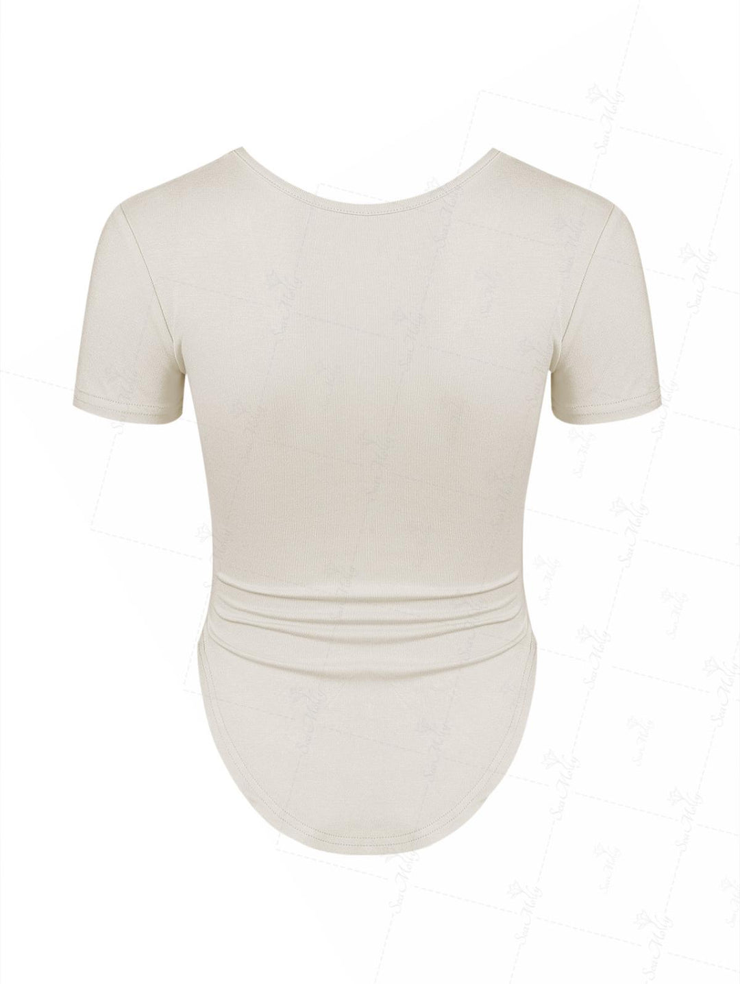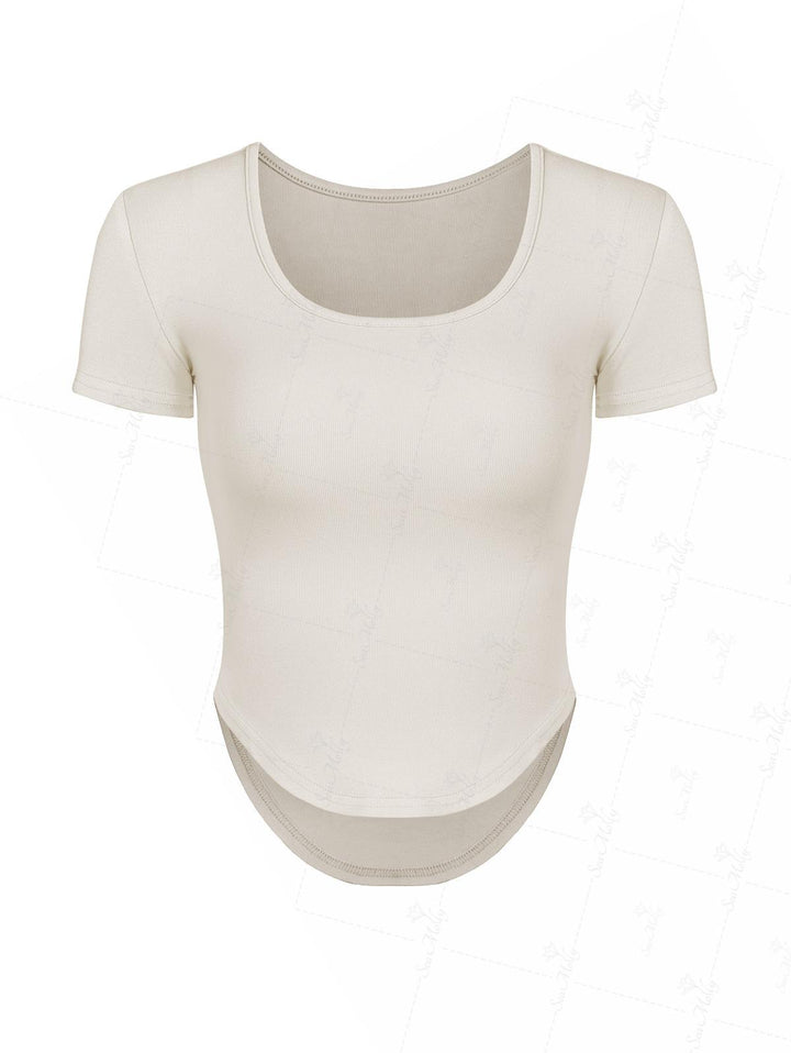 High Low Curved Hem Scoop Neck Short Sleeves T-shirt