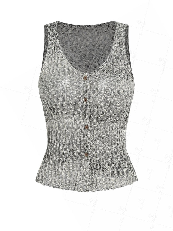 Black Ombre Sleeveless Button Up Knit Cardigan