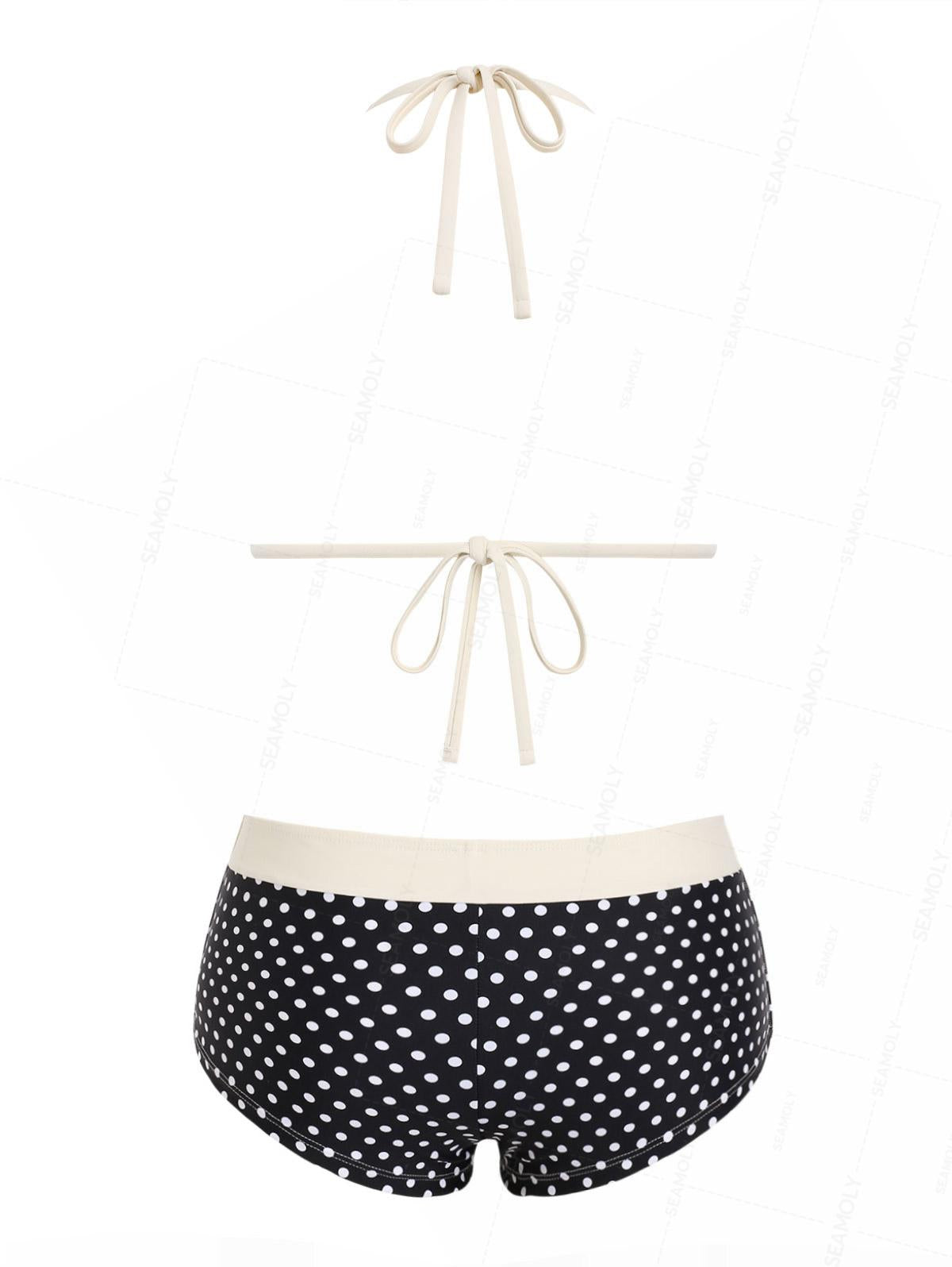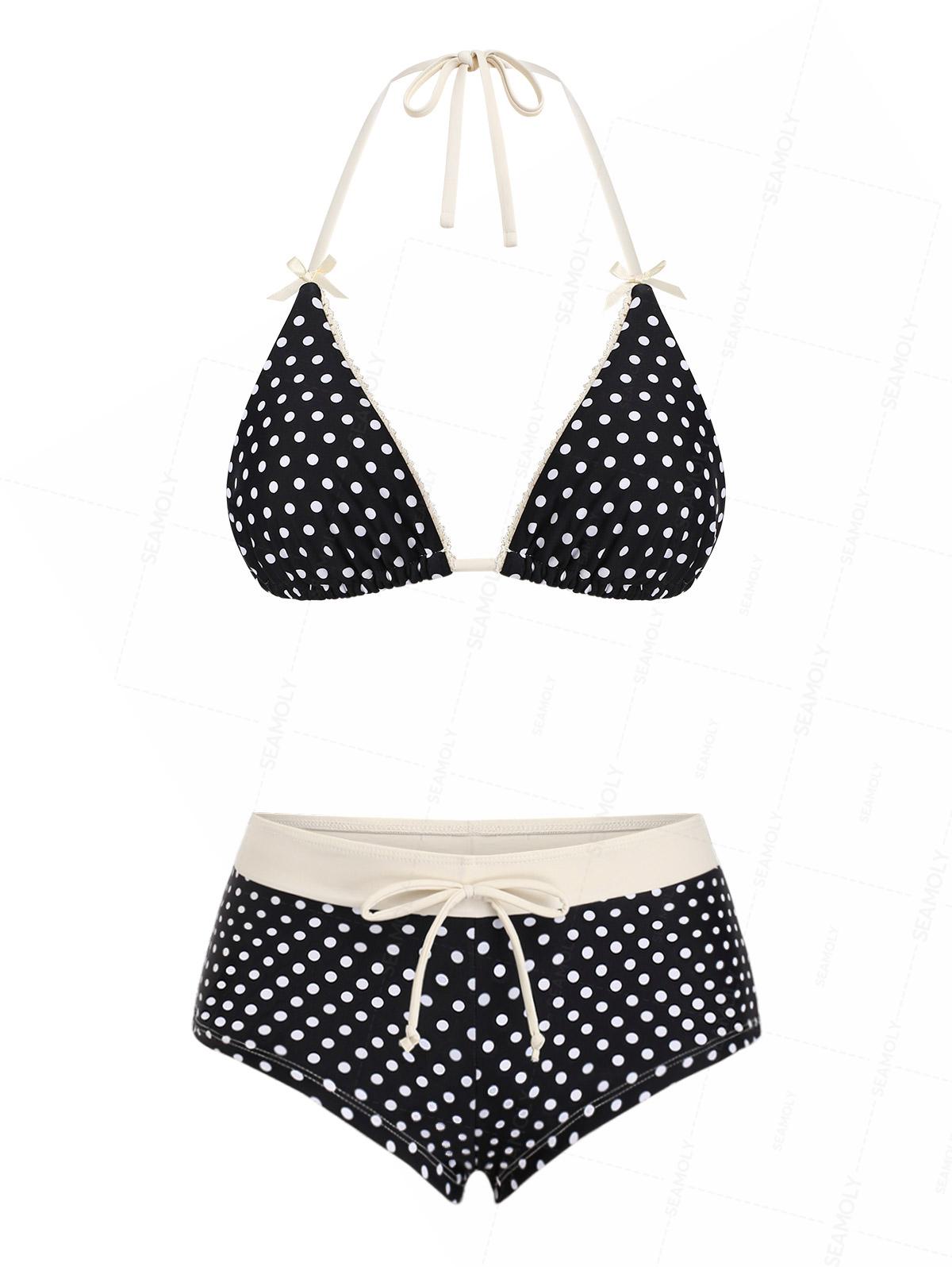 Seamolly Polka Dot Lace Bowknot Cheeky Boyshorts Bikini Set