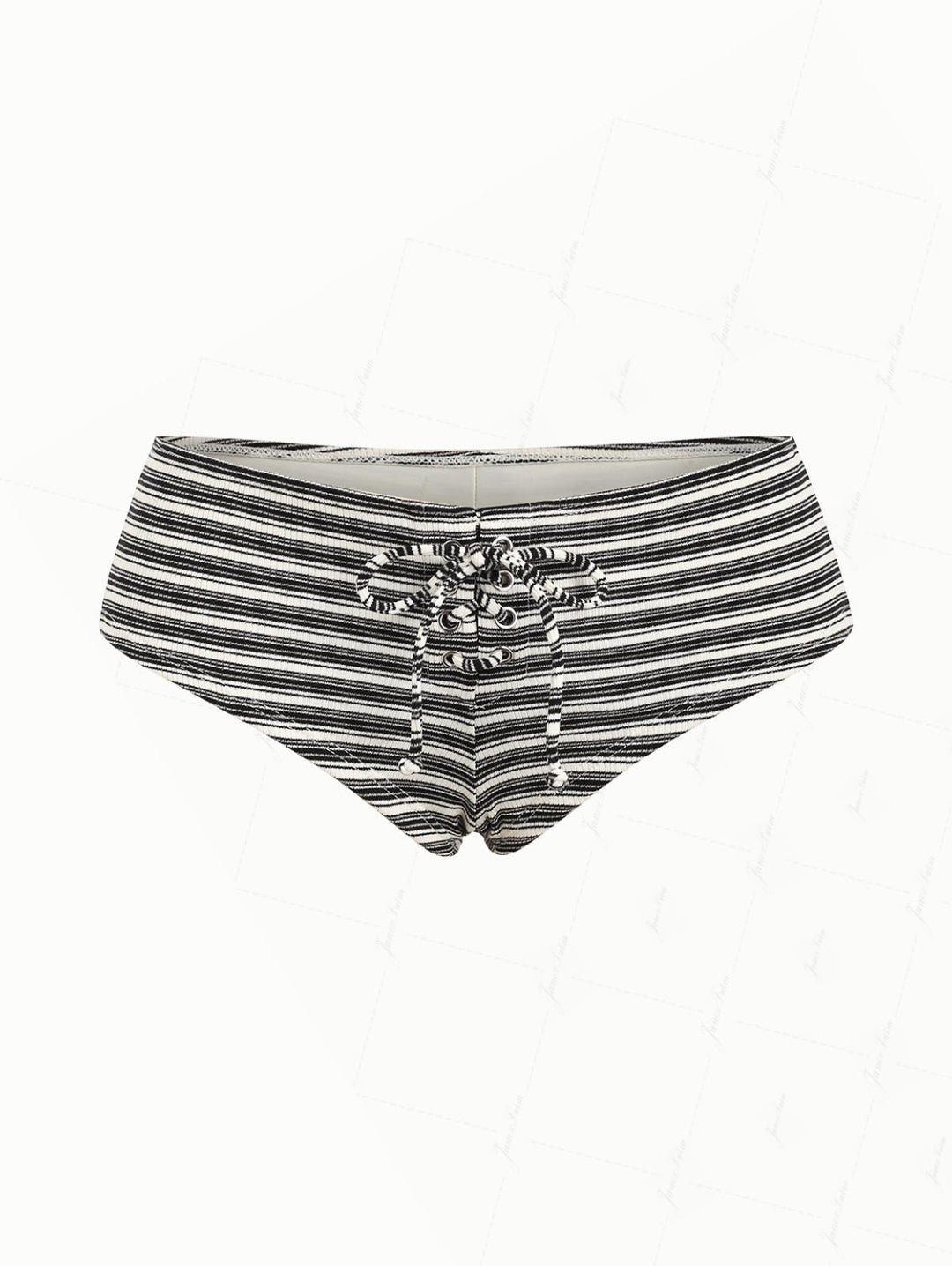 Black Knit Striped Ribbed Grommet Lace Up Bikini Bottom Cheeky Swim Boyshorts