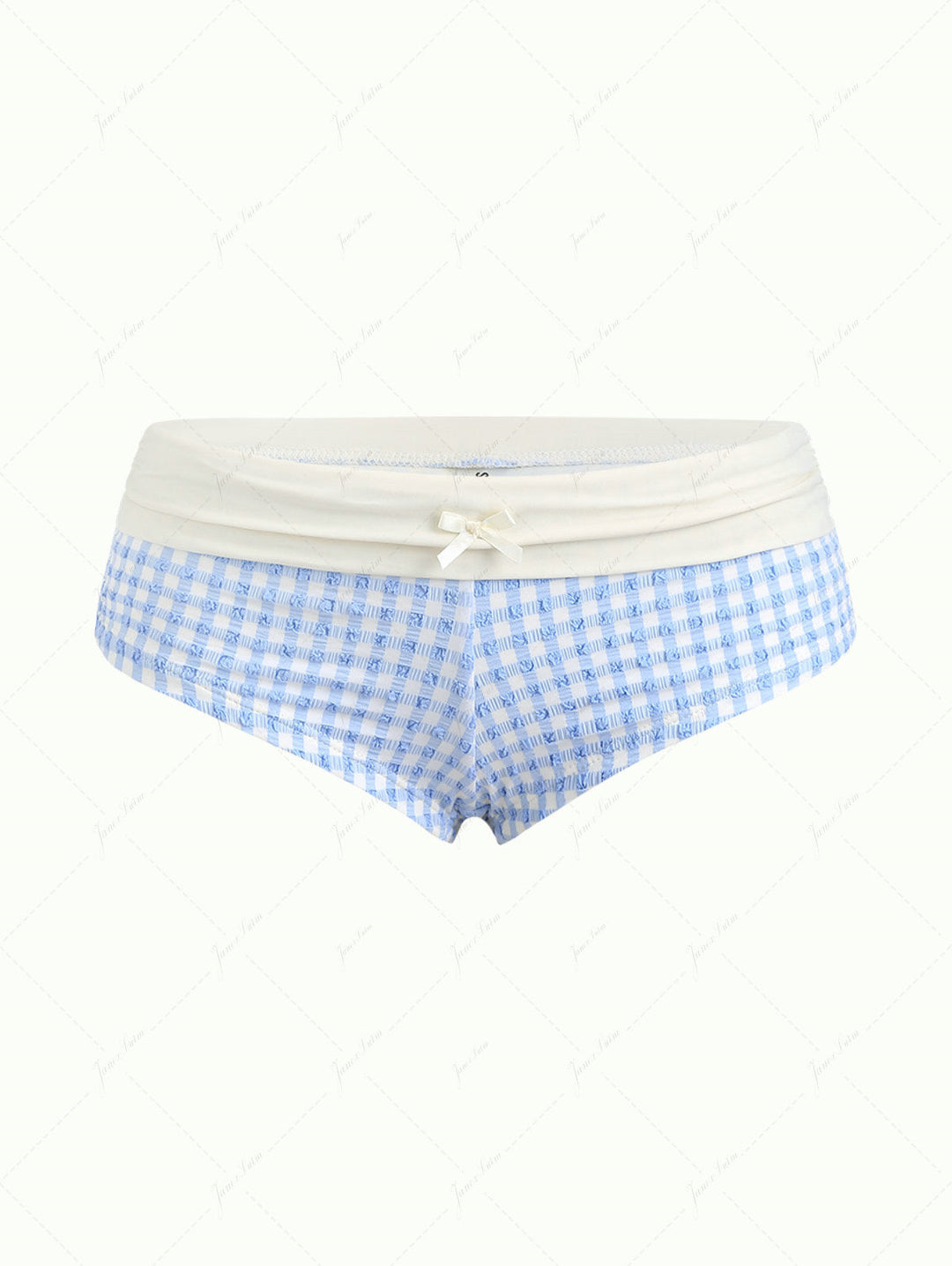 Blue Knitted Plaid Bowknot Bikini Bottom Cheeky Swim Boyshorts