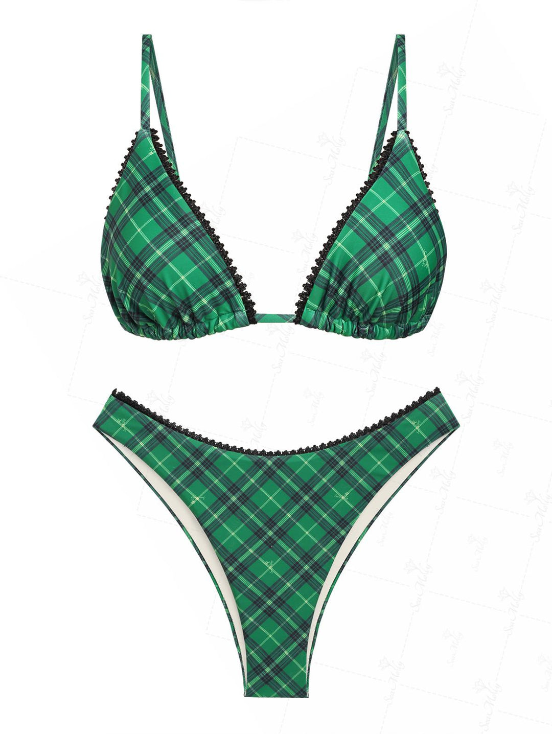 Seamolly Gingham Lace Bowknot Halter Triangle Cheeky Bikini Set
