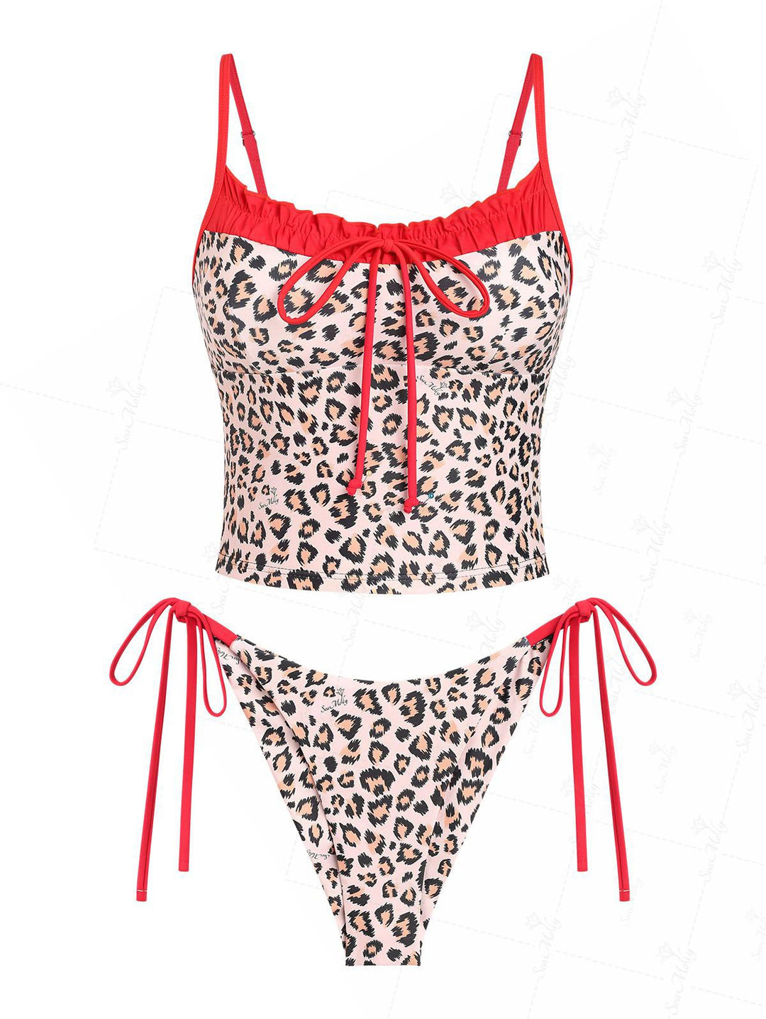 Seamolly Leopard Lace Halter Tied Tank Top & Hipster Bottom Tankini Set