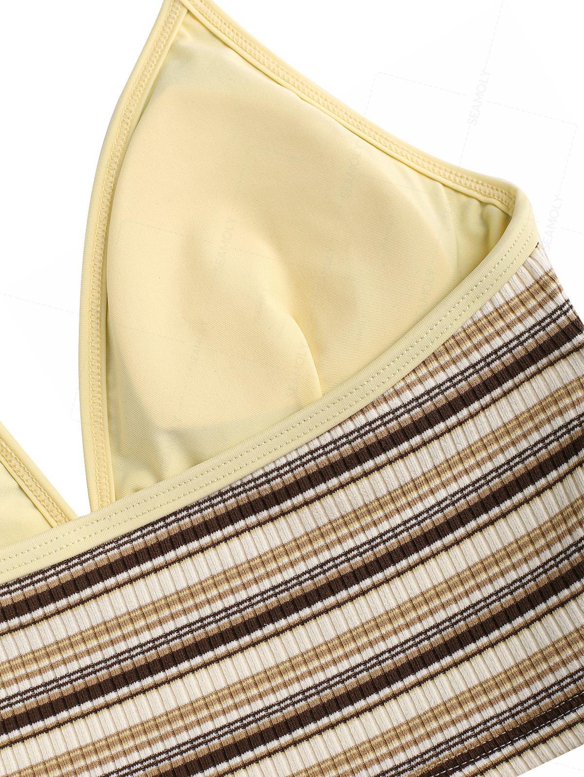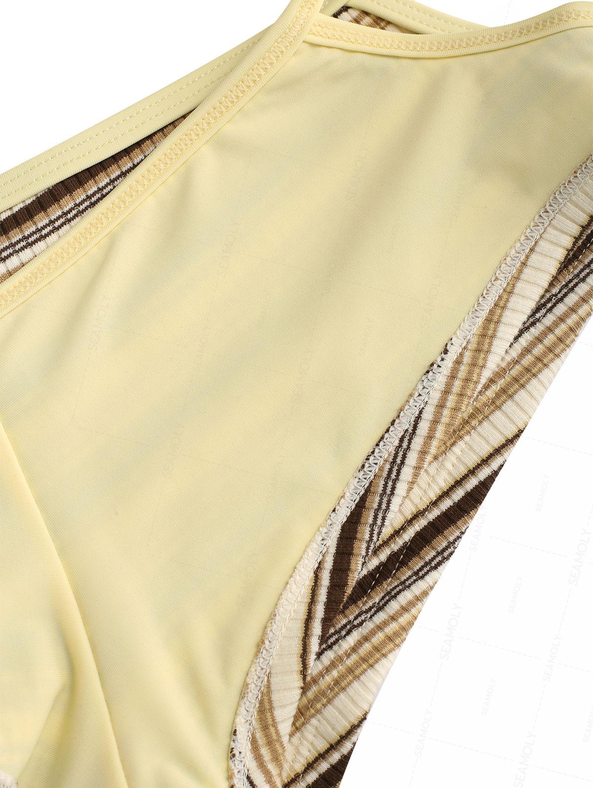 Seamolly Striped Ribbed Halter Cutout Tied Side Boyshorts Tankini Set