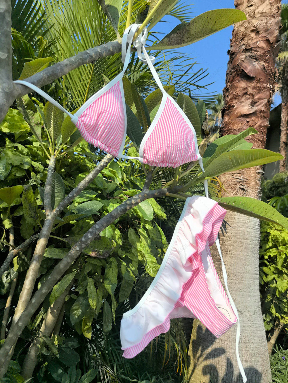 Hot tubs & chlorinated pools can affect our kinis – chlorine may fade colours, weaken fabric, and reduce elasticity over time. If you do take a dip, be sure to rinse your swimwear in cold, fresh water right after to help minimise damage. For neon and pastel-coloured bikinis, we love to add a teaspoon of salt when washing to maintain vibrancy.